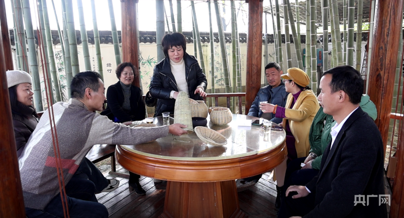 来到一片竹林间的凉亭里,负责人朱海梅向前来观光游客们介绍永州当地特色的竹文化,展示竹筐、竹篓、竹盘、竹簸箕等手工竹制品,这些竹制品不仅环保美观,而且坚固耐用,深得游客喜爱。竹子四季常青,中空外直,象征着君子,代表着高风亮节的美好品质。永州古时别称“竹城”,竹文化历史悠久,该山庄占地面积140亩,以竹文化为主题进行打造,四面竹林环绕,古色古香,韵味绵绵,今年12月中旬被评为湖南省四星级乡村旅游点。