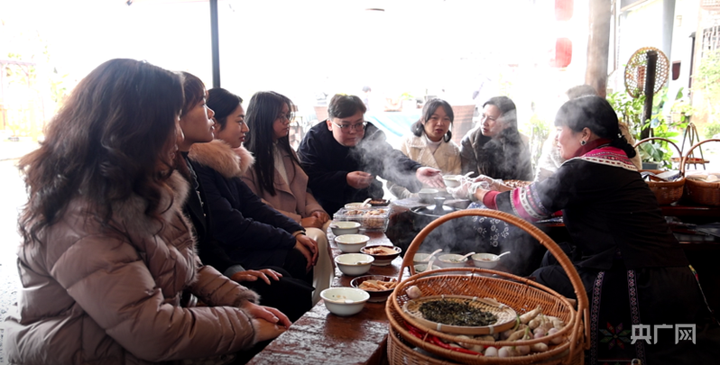 游客品瑶家油茶(央广网发 张潇悦 摄)