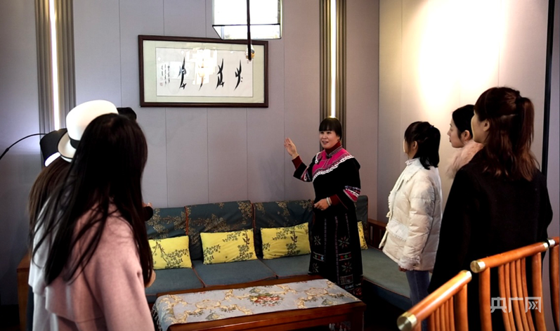 瑶山阿姨向游客介绍女书文化(央广网发 蒋静摄)