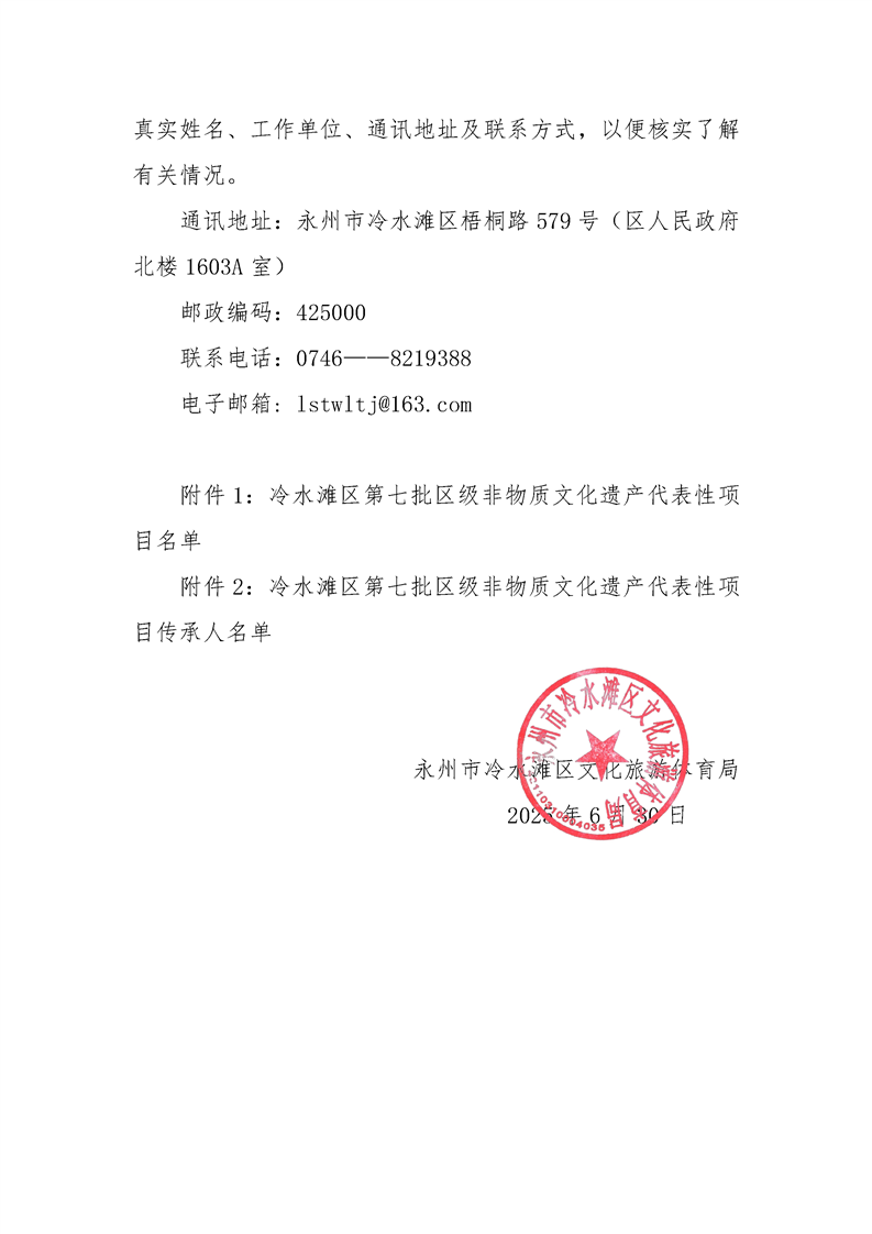 冷水滩区第七批非物质文化遗产代表性项目和冷水滩区第七批区级非物质文化遗产项目代表性传承人公示