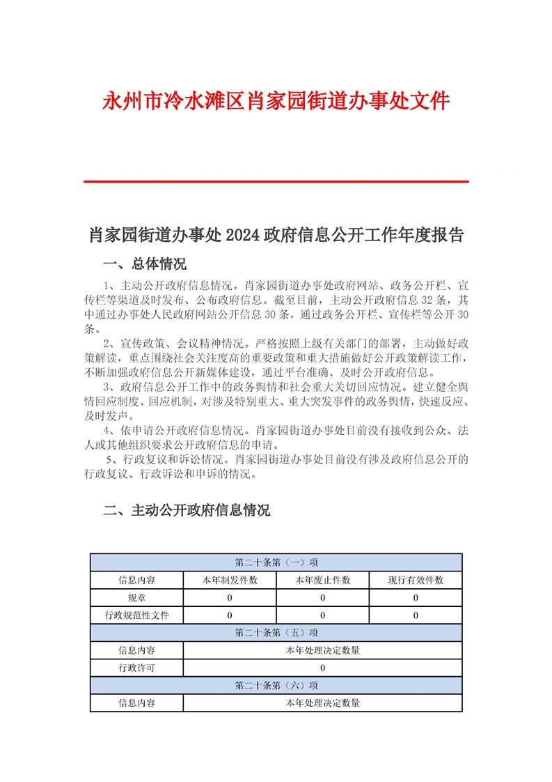 肖家园街道办事处2024政府信息公开工作年度报告