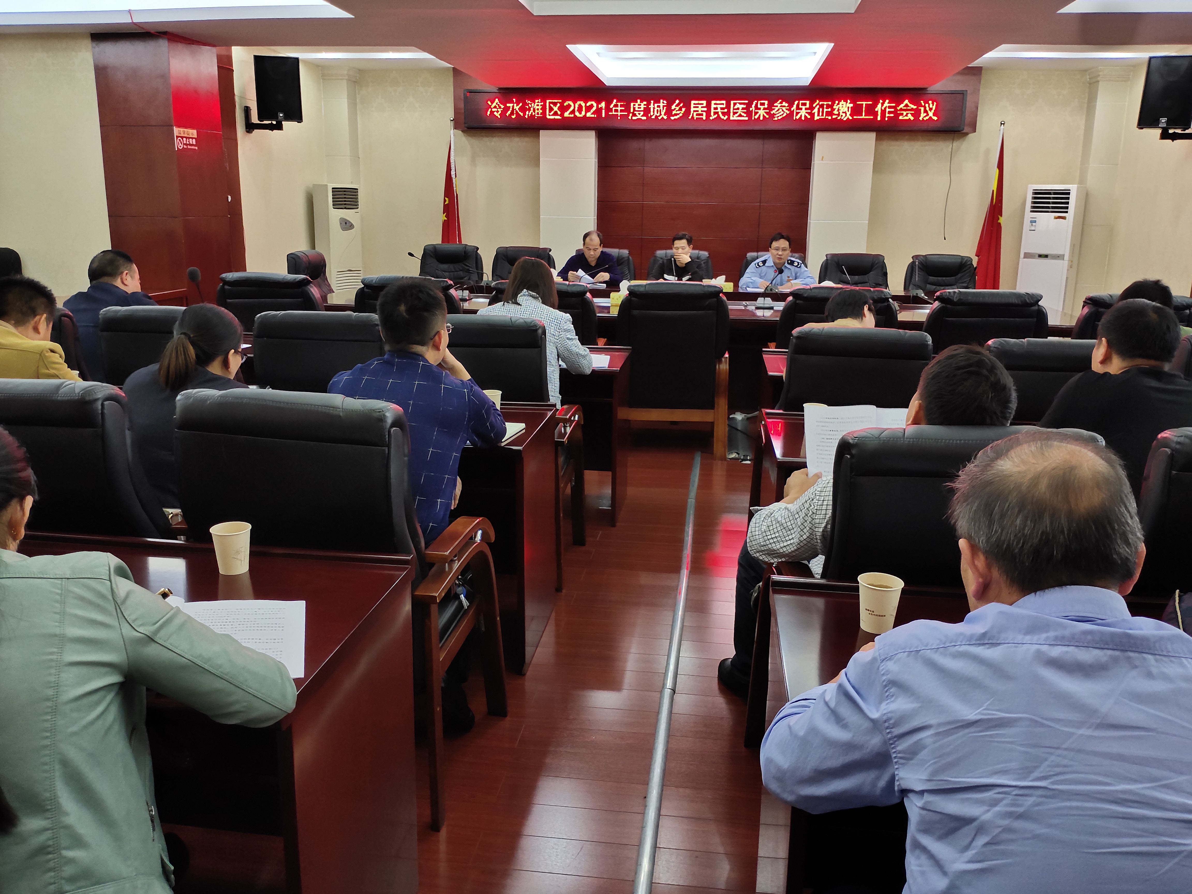 为确保2021年度城乡居民基本医疗保险征缴工作顺利推进, 9月24日下午,冷水滩区召开2021年度城乡居民医保参保征缴工作会议,区医疗保障局、区税务局及各乡镇、街道单位负责人参加了会议。会议解读了《关于做好2021年度城乡居民医保参保征缴工作的通知》,明确2021年度全区城乡居民个人缴费标准为每人每年280元,缴费时间为2020年9月1日至2020年12月31日。参保人可通过“湘税社保”手机APP或微信小程序缴费、银行代扣代缴、银行智能POS机缴费、手机银行或网上银行缴费等信息化便捷渠道缴费续保。会议要求各征缴单位要加强组织领导,密切配合,按照“全民参保”的要求,全面落实好参保缴费任务,确保贫困人口参保率达到100%;确保参保资助政策落实到位,但不能出现重复资助。各乡镇街道要及时报送贫困人口参保情况,建立未参保台账,做好未保有因;确保费款安全,各乡镇、街道要加强对协助缴费的镇、村工作人员的管理,严禁私自代收现金而不代缴或漏缴、选择性缴费,及时将参保人员名单进行公示。要始终坚持以人民为中心的理念,广泛宣传,主动担当作为,鼓足干劲,迎难而上,确保2021年度城乡居民基本医疗保险征缴工作任务圆满完成。