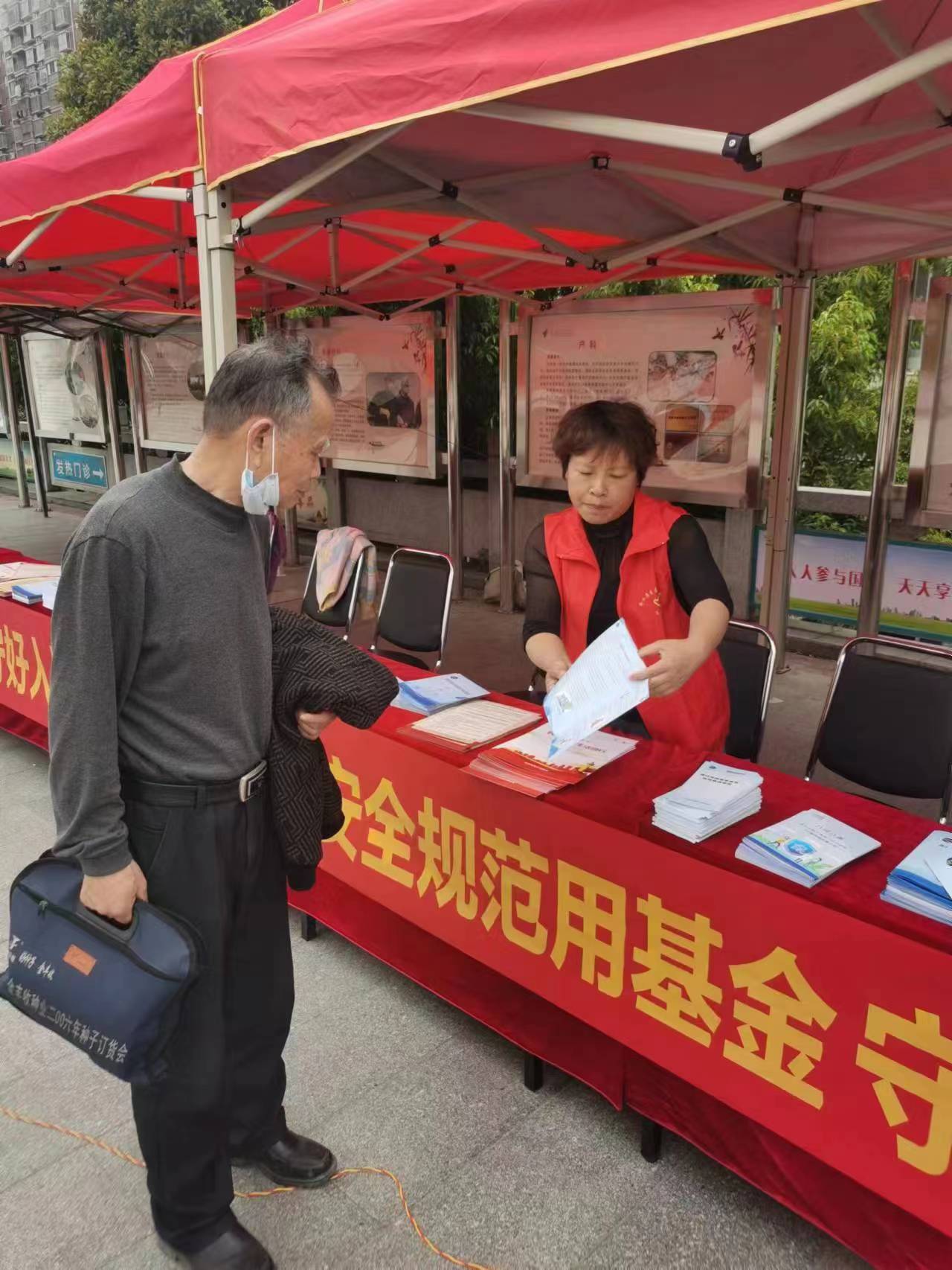 4月13日,以“安全规范用基金 守好人民‘看病钱’”为主题的冷水滩区医保基金监管集中宣传月活动在永州市中心医院北院门诊广场举行。