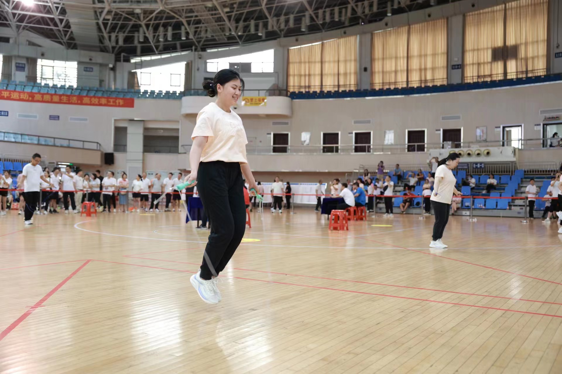 在个人赛中,随着裁判“开始”的哨声,挥动的绳索如银蛇般飞舞,跳动的选手似彩蝶般纷飞,只见绳子在队员们的脚底下“嗖嗖”地穿过,大家都展现出不凡的实力。可喜的是我局两名职工在单摇赛项中脱颖而出,荣获女子单摇赛二等奖、男子单摇赛三等奖。