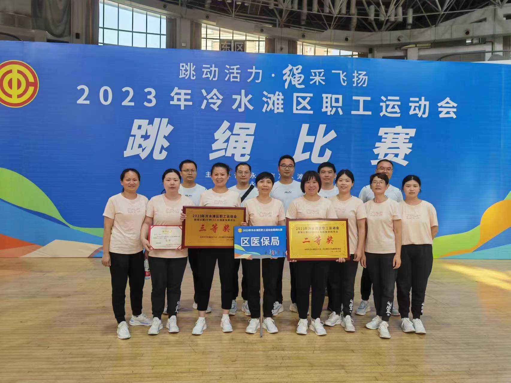 在考验团队默契度的1分钟10人长绳集体跳比赛中,大家齐心协力、再创佳绩。医保局一队荣获二等奖,二队荣获三等奖。