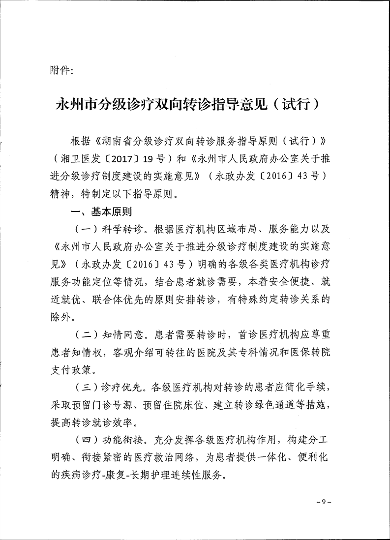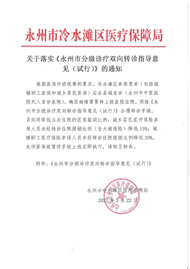 关于落实《永州市分级诊疗双向转诊指导意见(试行)》的通知