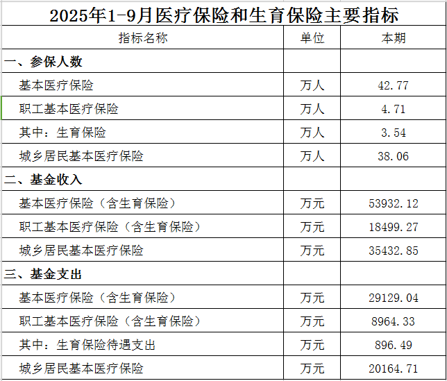 2025年1-9月医疗保险和生育保险主要指标
