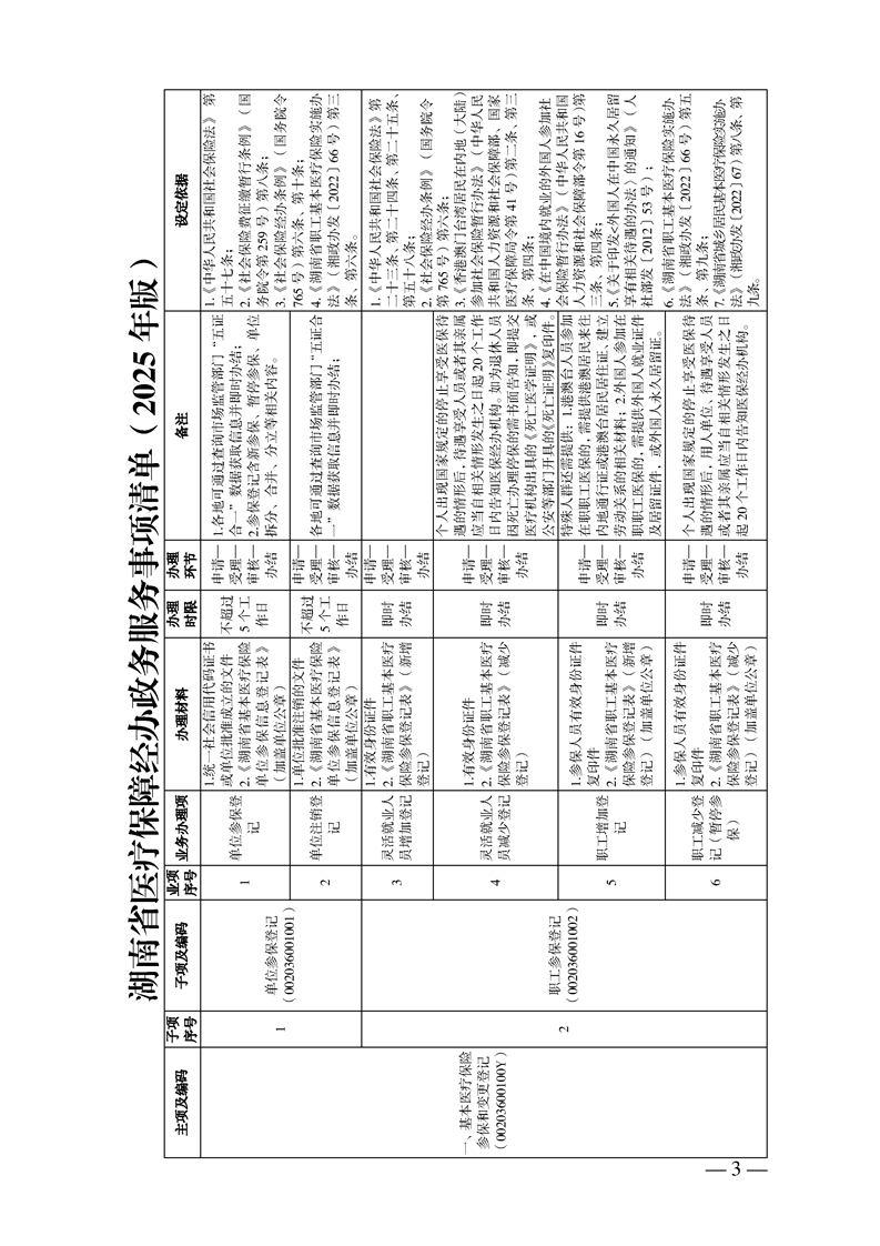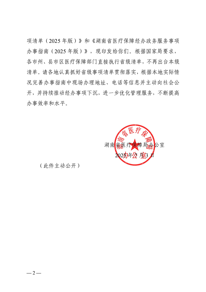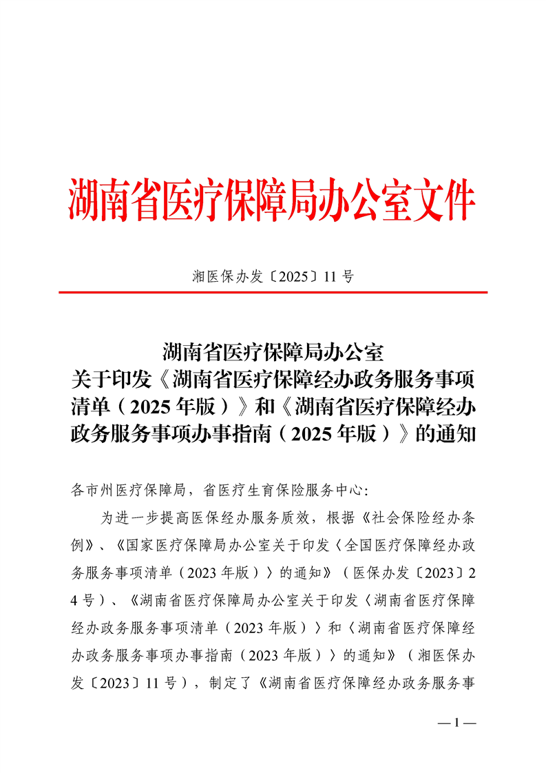 关于印发湖南省医疗保障经办政务服务事项清单(2025年版)和湖南省医疗保障经办政务服务事项办事指南(2025年版)的通知