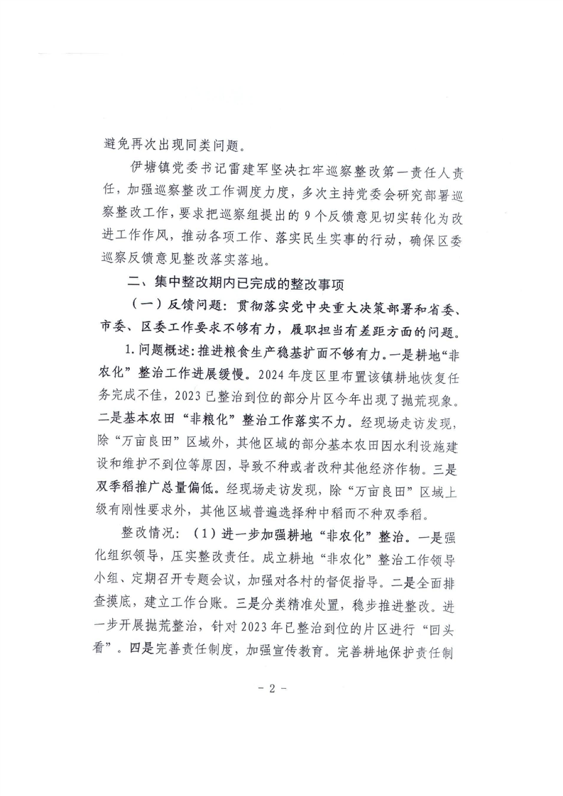 中共永州市冷水滩区伊塘镇委员会关于巡察整改进展情况的通报