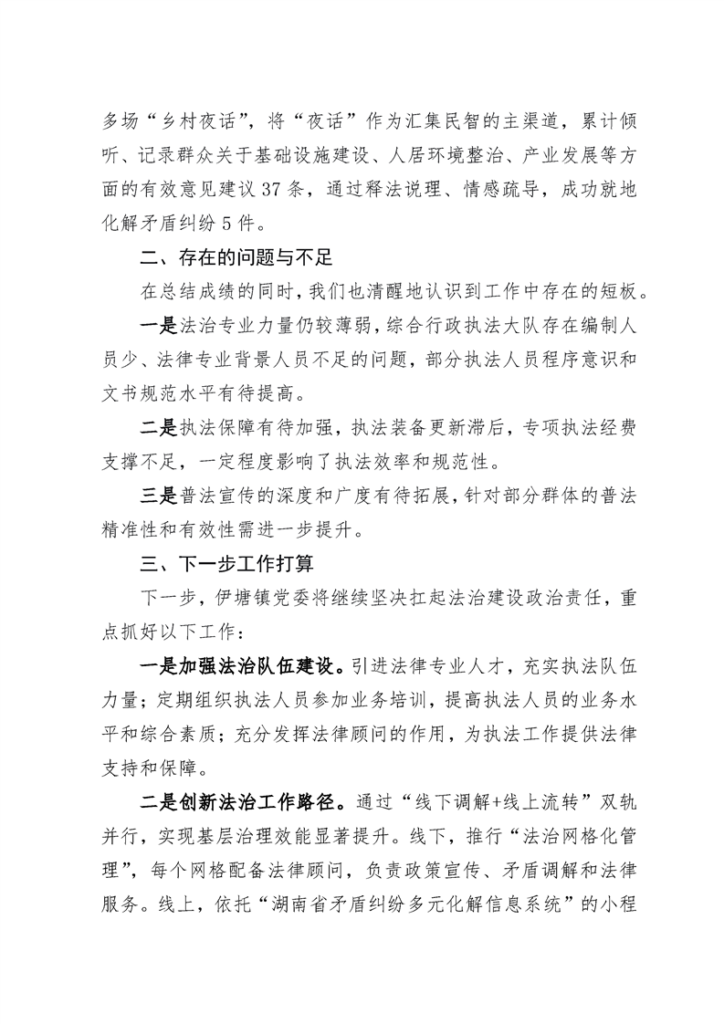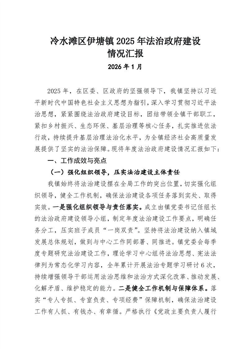 冷水滩区伊塘镇2025年法治政府建设情况汇报