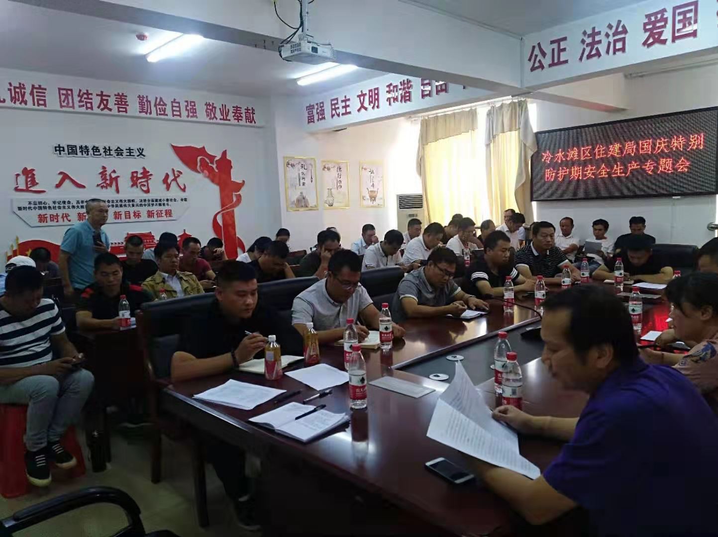 9月8日上午,我局在会议室召开了特护期安全生产专题会议,会议传达上级部门对国庆期间安全生产的要求,对国庆70周年期间住建系统安全生产工作进行动员部署。全区在建项目的施工单位项目负责人、监理单位项目总监、建设单位项目负责人参加会议,区住建局党组成员、总工程师雷卫国出席会议并对相关工作进行了部署安排。