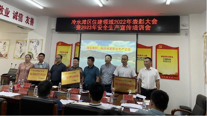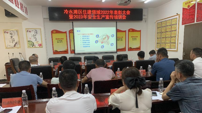 (通讯员 唐立峰)为进一步加强全区建筑施工安全生产宣传教育、提高安全生产意识,营造良好的安全生产环境,落实2023年全市建筑施工“安全生产月”有关部署和要求。6月28日,冷水滩区住建局组织召开冷水滩区住建领域2022年表彰大会暨2023年安全生产宣传培训会。冷水滩区住建局各股室及下属单位负责人、全区2022年、2023年在建工程项目经理、总监等相关人员参加了此次会议。由冷水滩区住建局“安全生产月”活动领导小组为冷水滩区优秀建设单位进行颁奖,并特别邀请永州市城乡建设中等职业技术学校负责人邓新茂作安全生产专题授课。