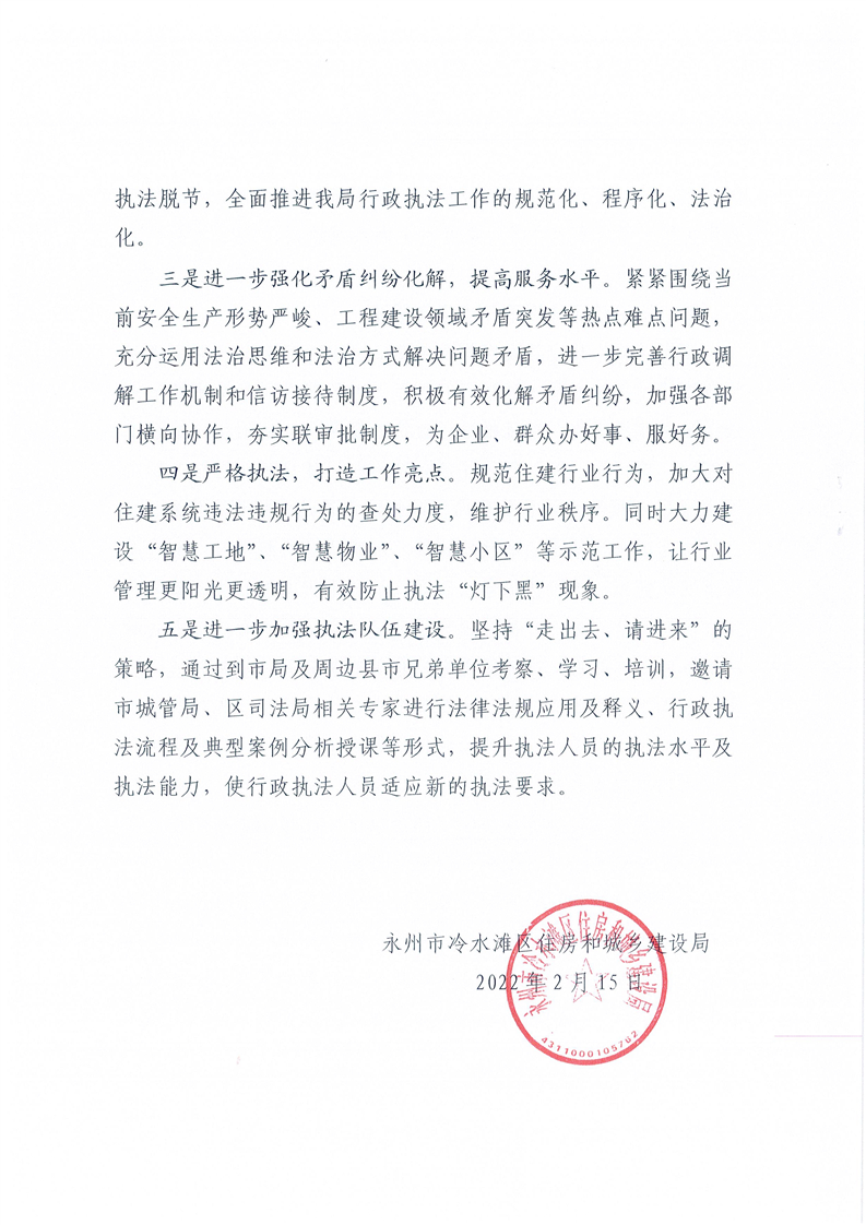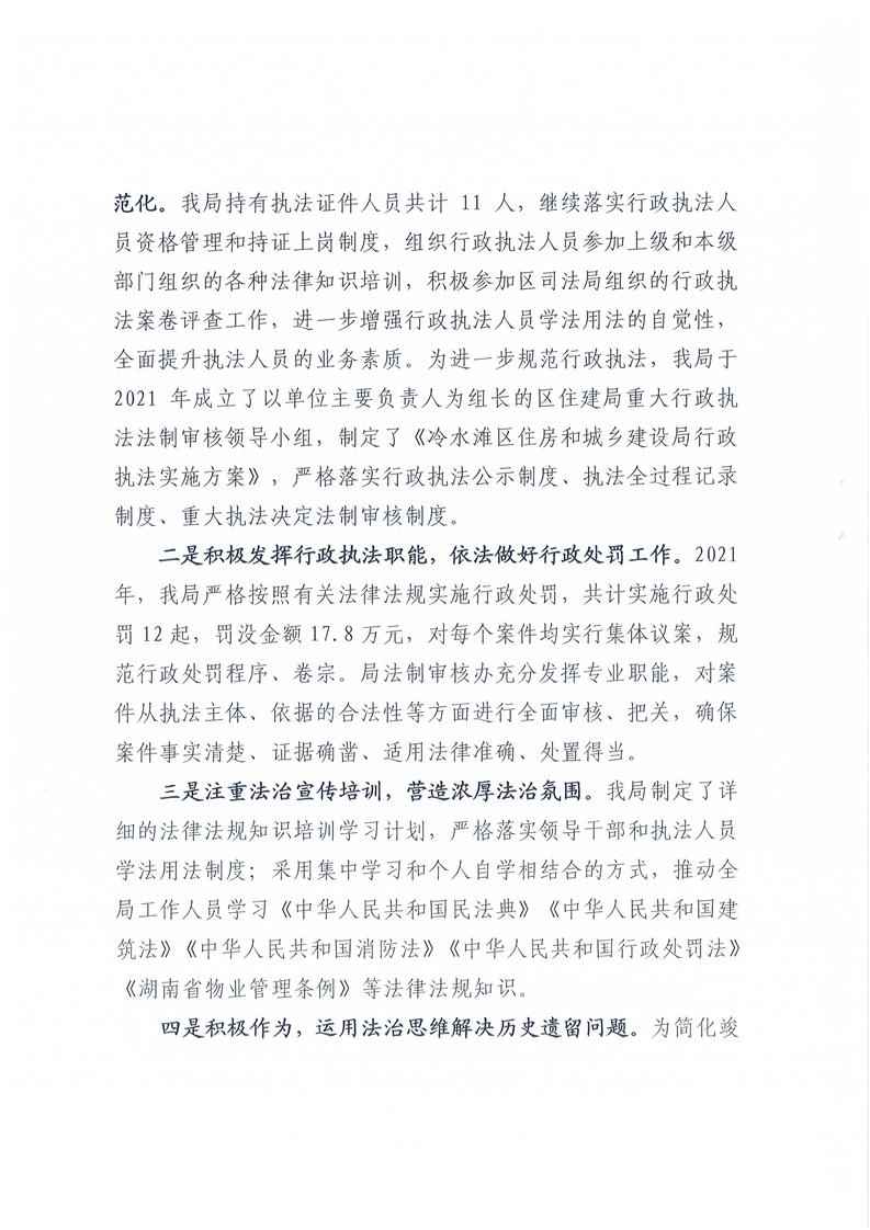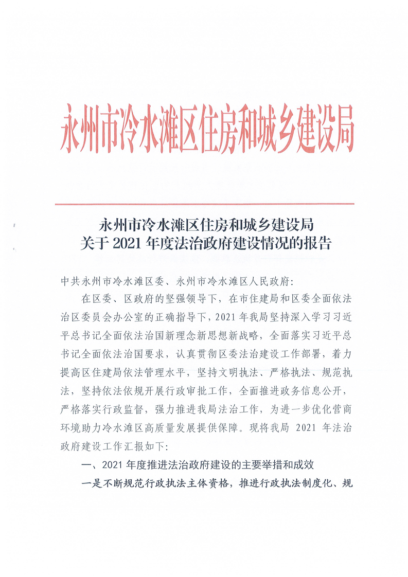 永州市冷水滩区住房和城乡建设局关于2021年度法治政府建设情况的报告