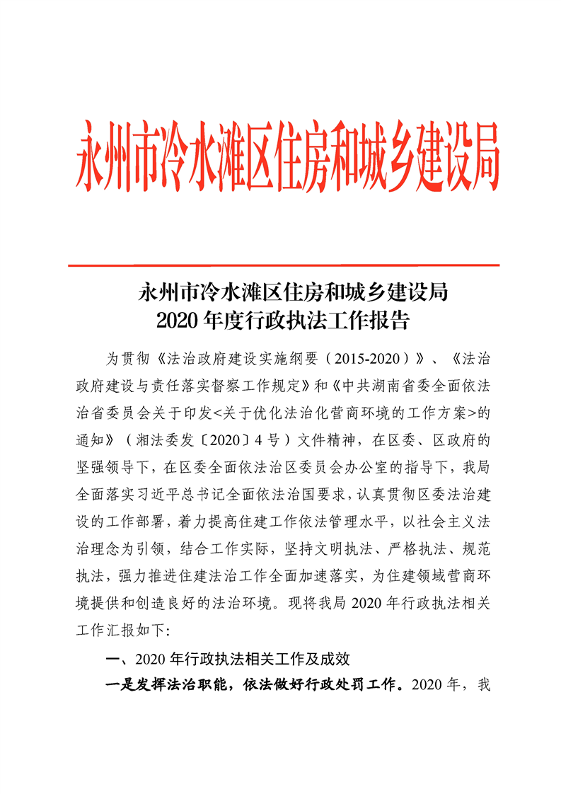 永州市冷水滩区住房和城乡建设局2020年度行政执法工作报告
