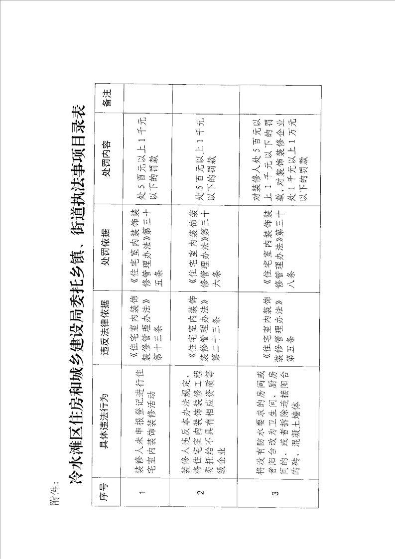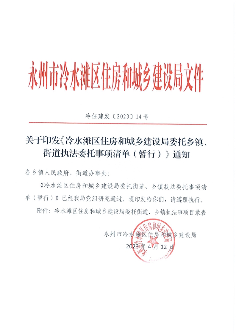 关于印发《冷水滩区住房和城乡建设局委托乡镇、街道执法委托事项清单(暂行)》的通知