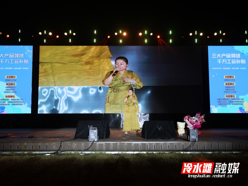 冷水滩融媒8月10日讯(记者 李秋燕 周勇)8月9日晚,湘江西路婚纱草坪广场灯火璀璨、人流如织,永州市2025年“激情消费季・优品大展销”系列活动第五场文艺演出暨“滩上粤歌・永跑者之夜”音乐会在此热力开演,为市民献上一场融合视听享受与消费便利的夏夜盛宴。