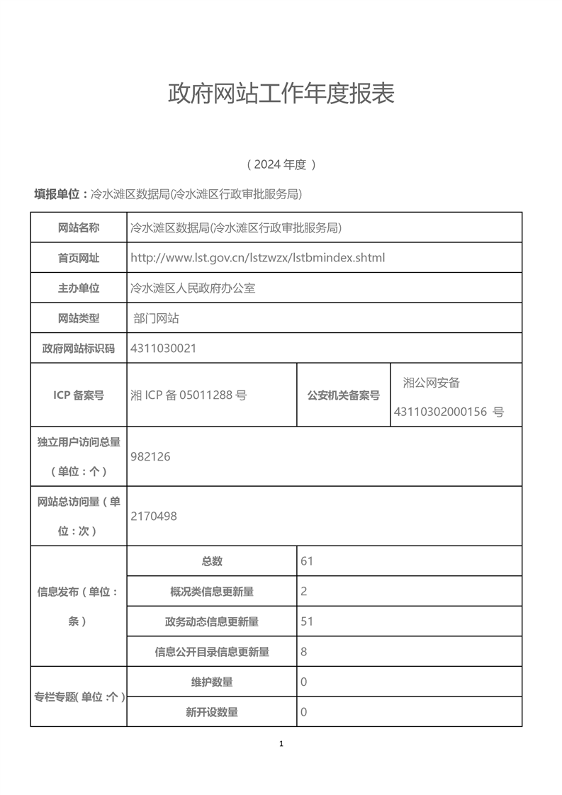2024年永州市冷水滩区行政审批服务局政府网站工作年度报表
