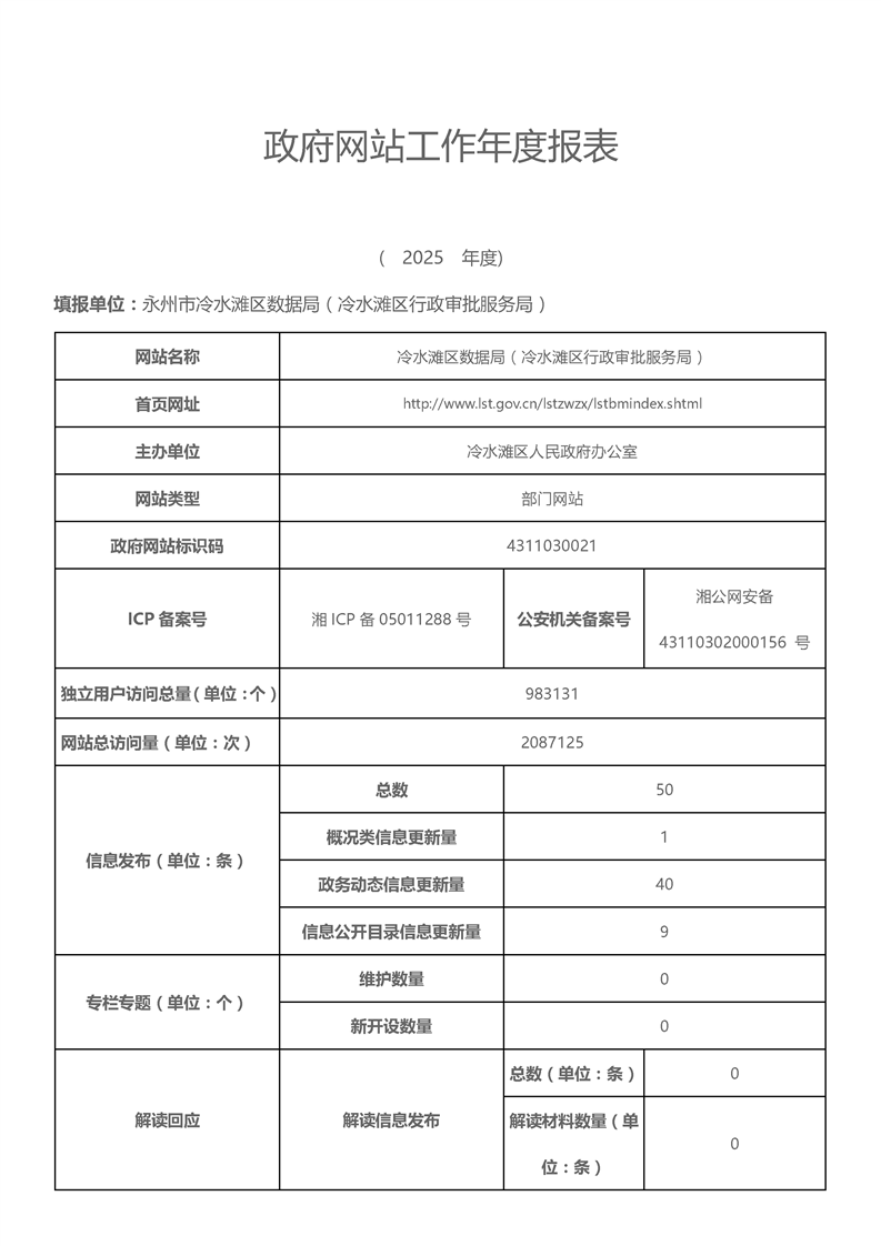 2025年永州市冷水滩区数据局政府网站工作年度报表