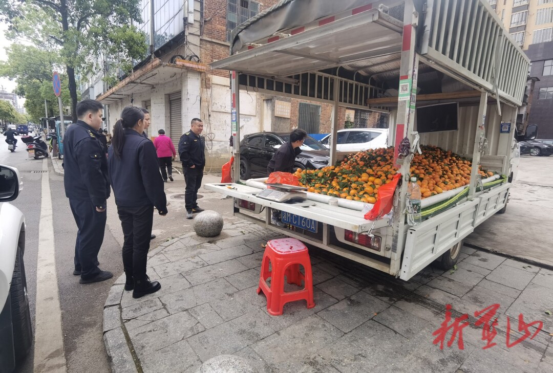 在工业大道路段,一贩卖水果的货车占道经营,将水果摆放在城市道路上,严重影响车辆通行,存在一定的安全隐患。执法人员对货车车主进行耐心细致的劝导,指出占道经营问题的严重性,督促其及时将货车开走,确保道路安全通行。