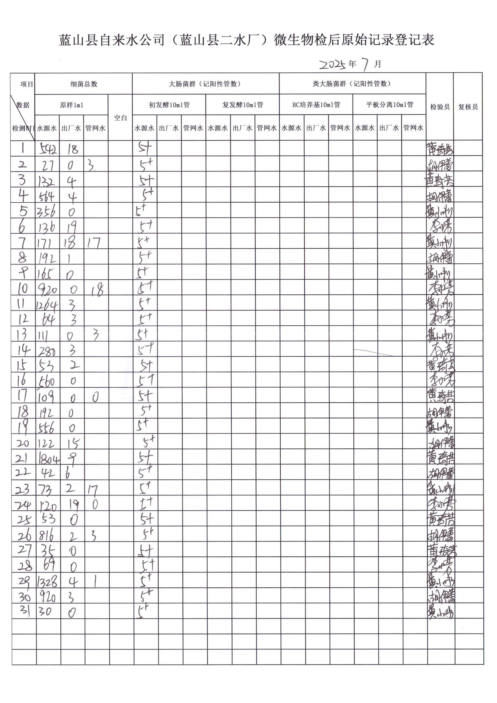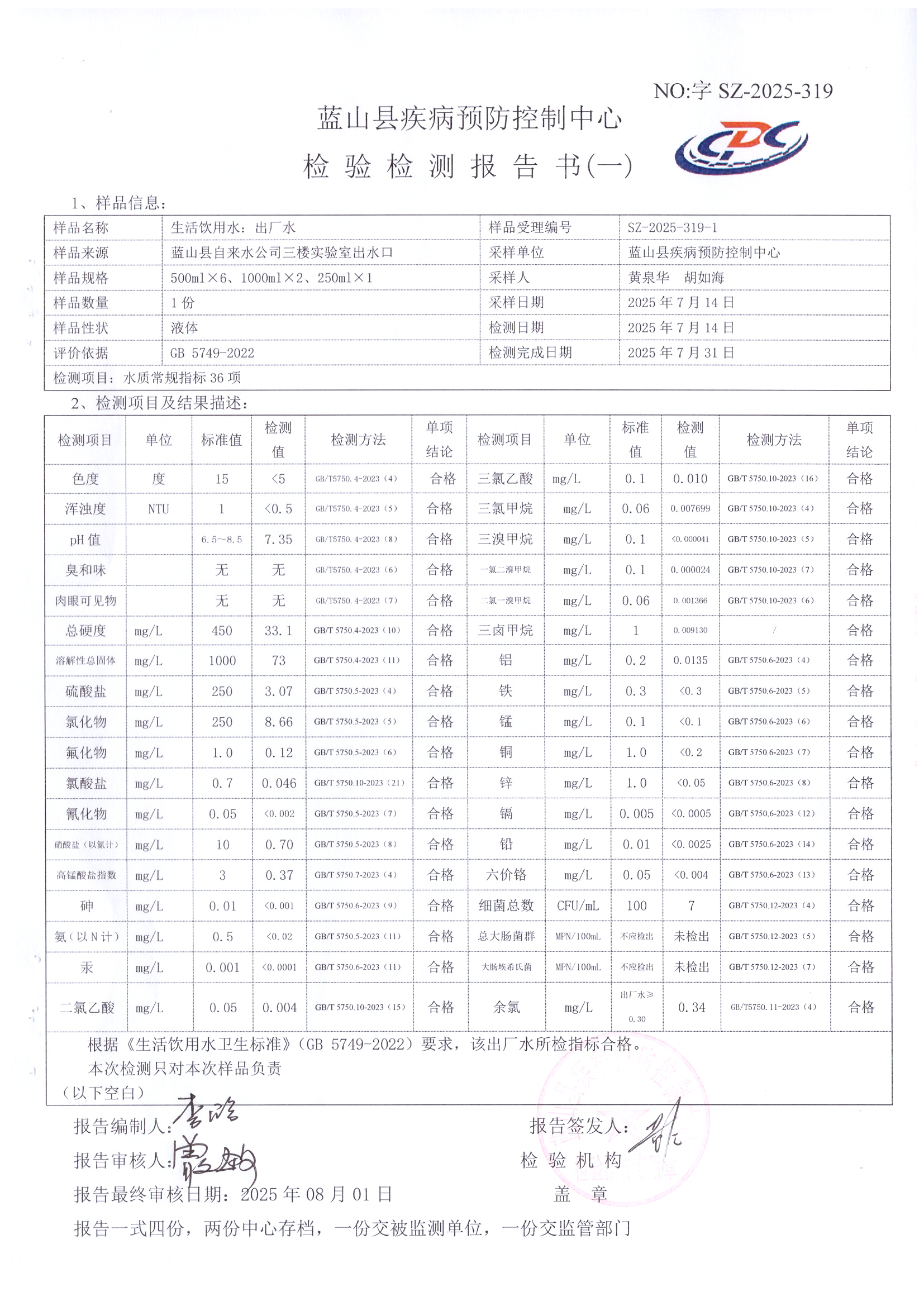 名称: 2025年7月份市政管网生活饮用水水质监测结果公示