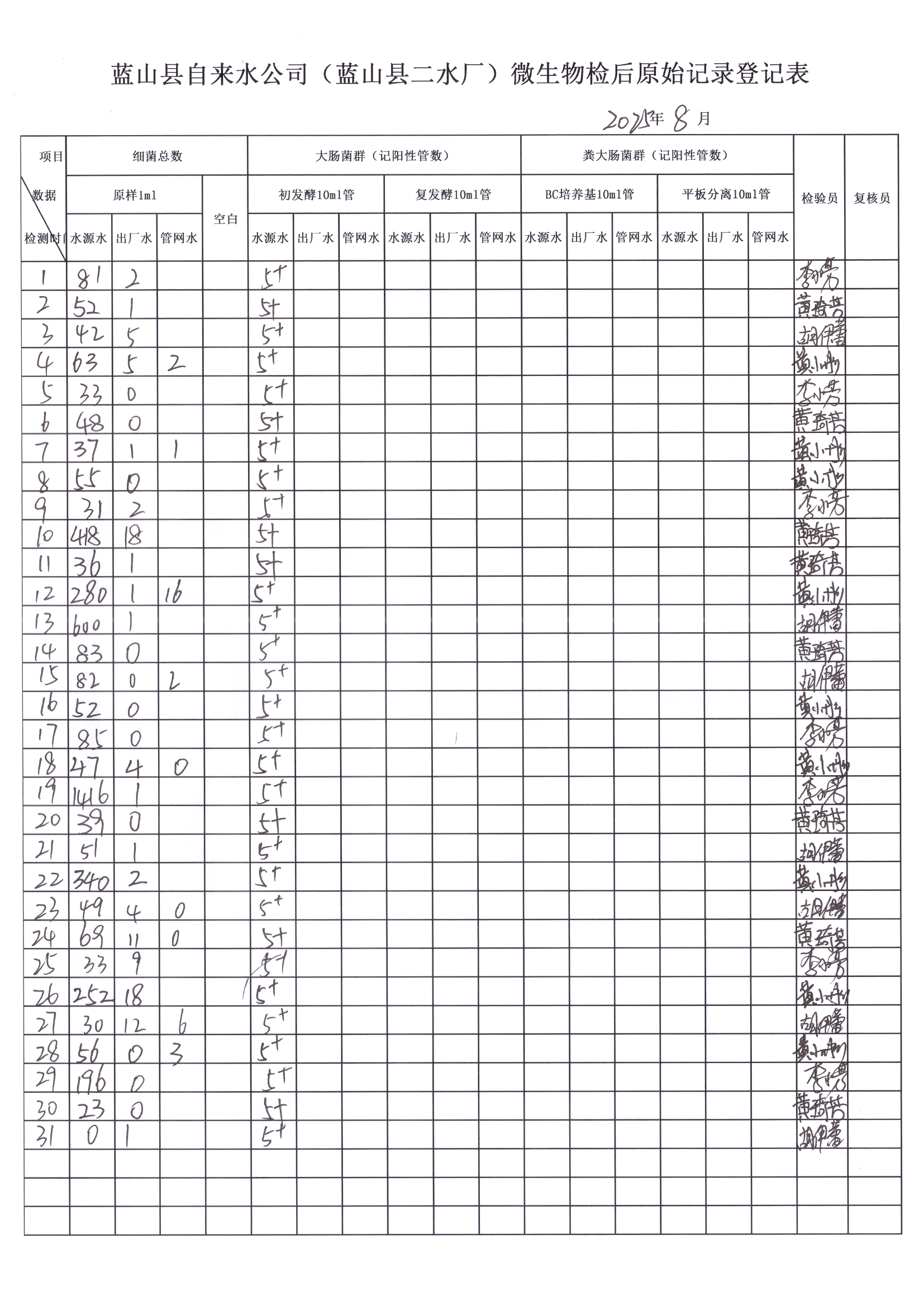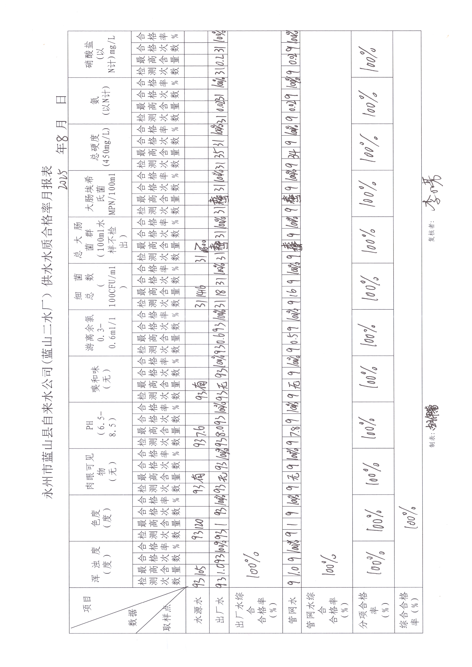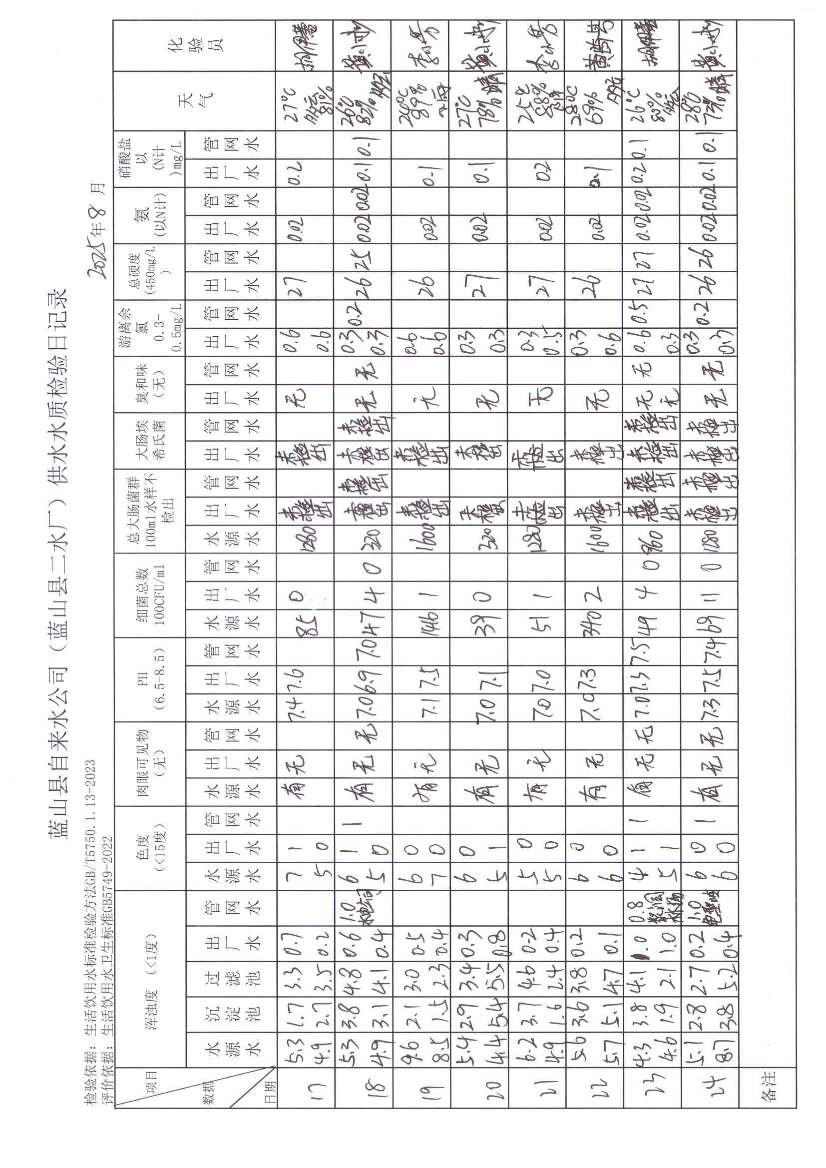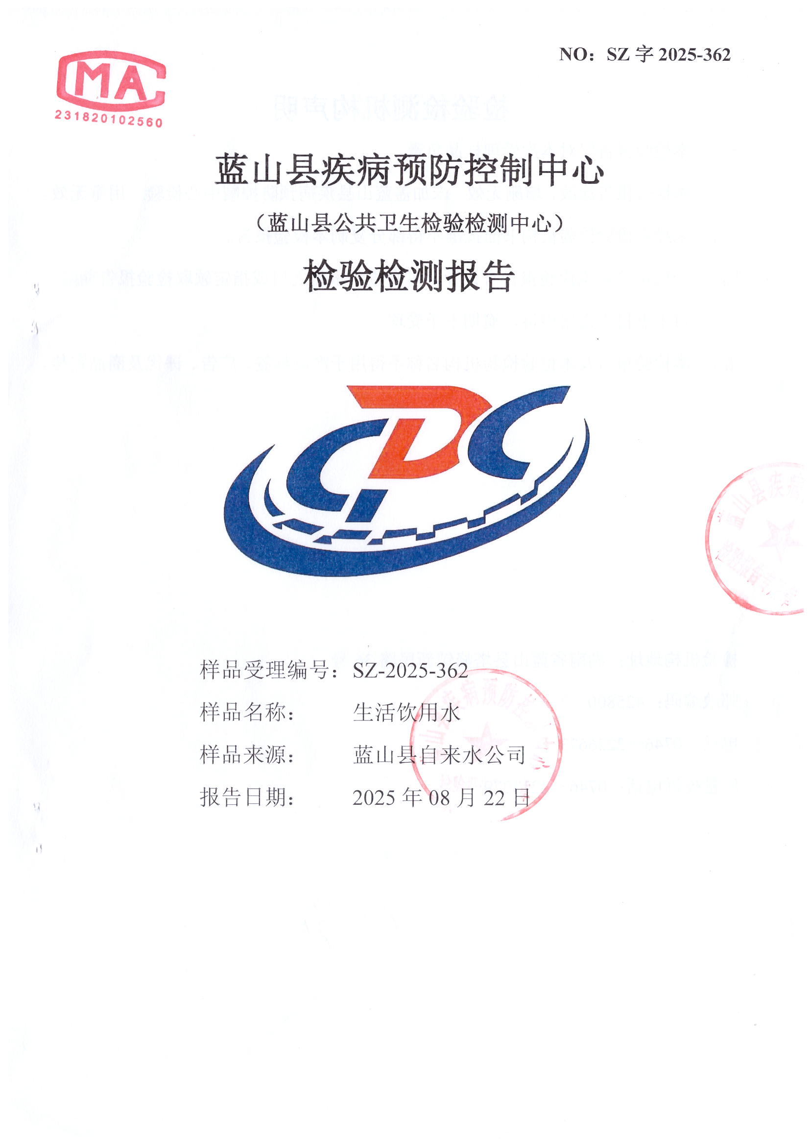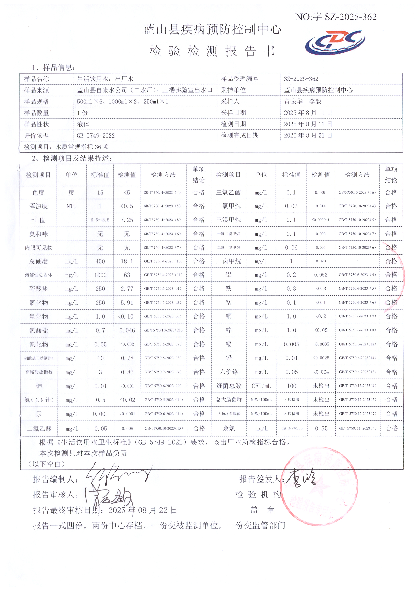 2025年8月份市政管网生活饮用水水质监测结果公示