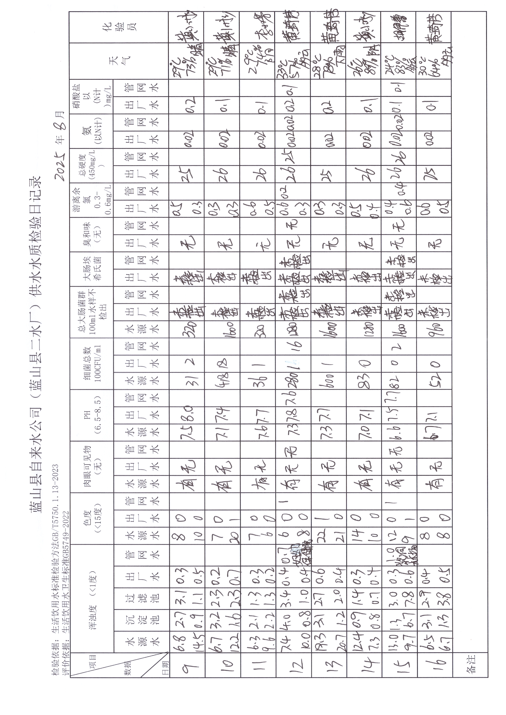 名称: 2025年8月份市政管网生活饮用水水质监测结果公示
