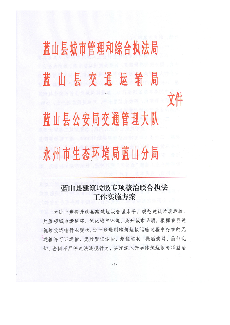 名称: 蓝山县建筑垃圾专项整治联合执法工作实施方案