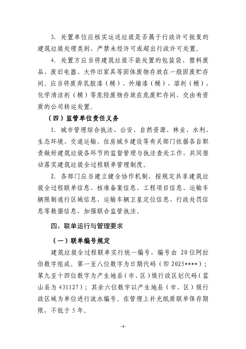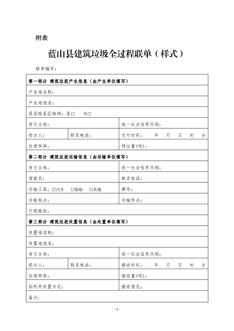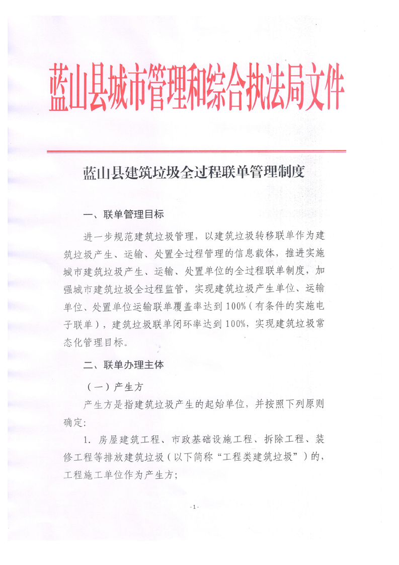 蓝山县建筑垃圾全过程联单管理制度