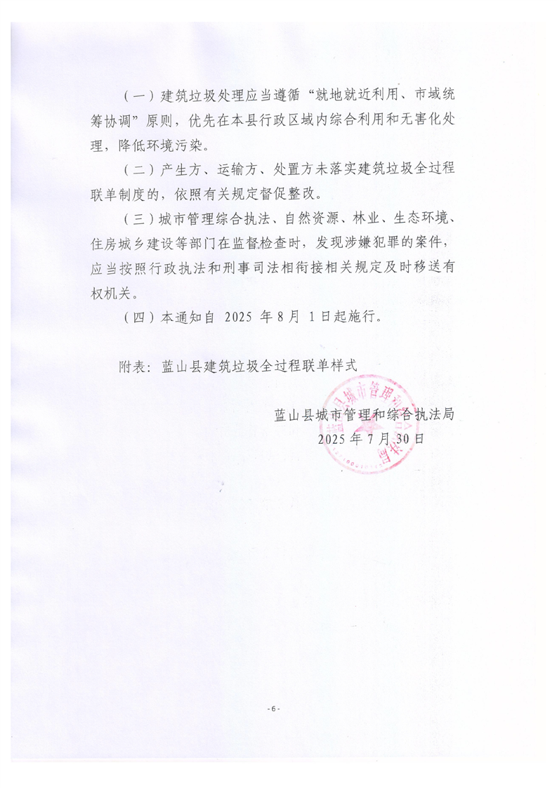 发文机关: 蓝山县城市管理和综合执法局 发文日期: 2025-08-01