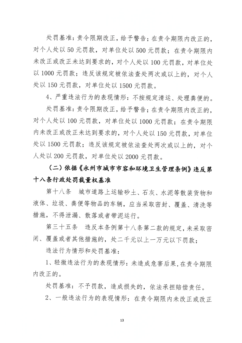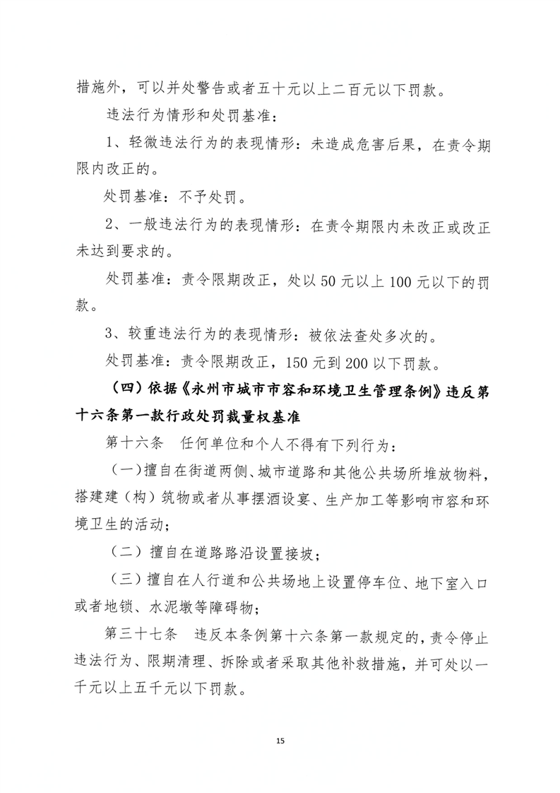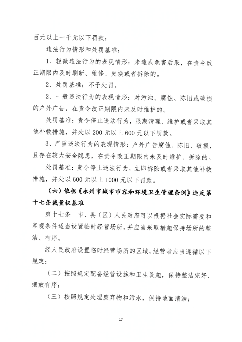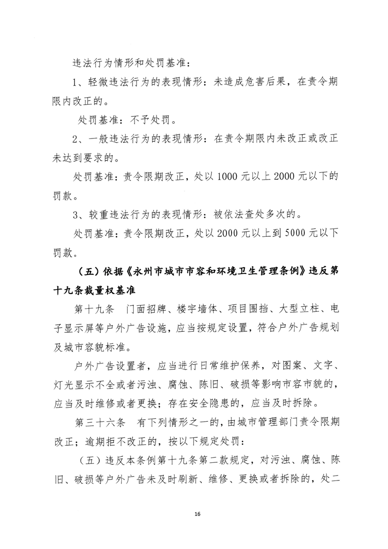 名称: 关于印发《永州市城市管理行政处罚裁量权基准》的通知
