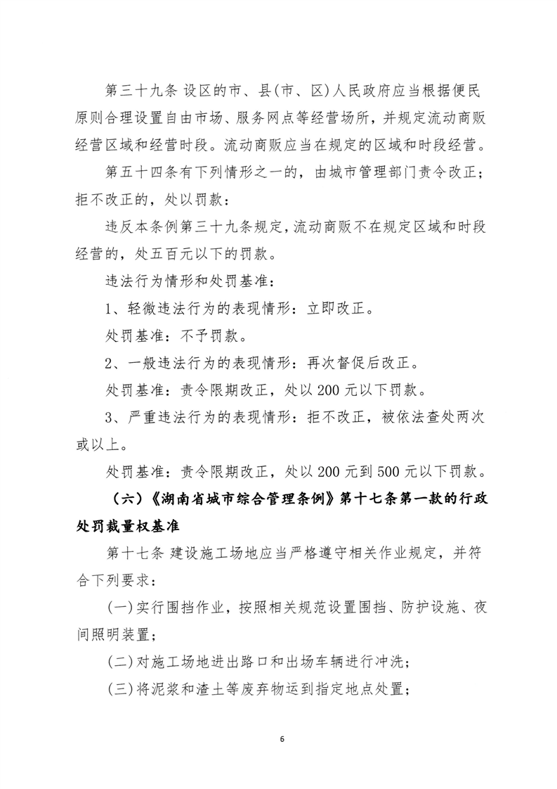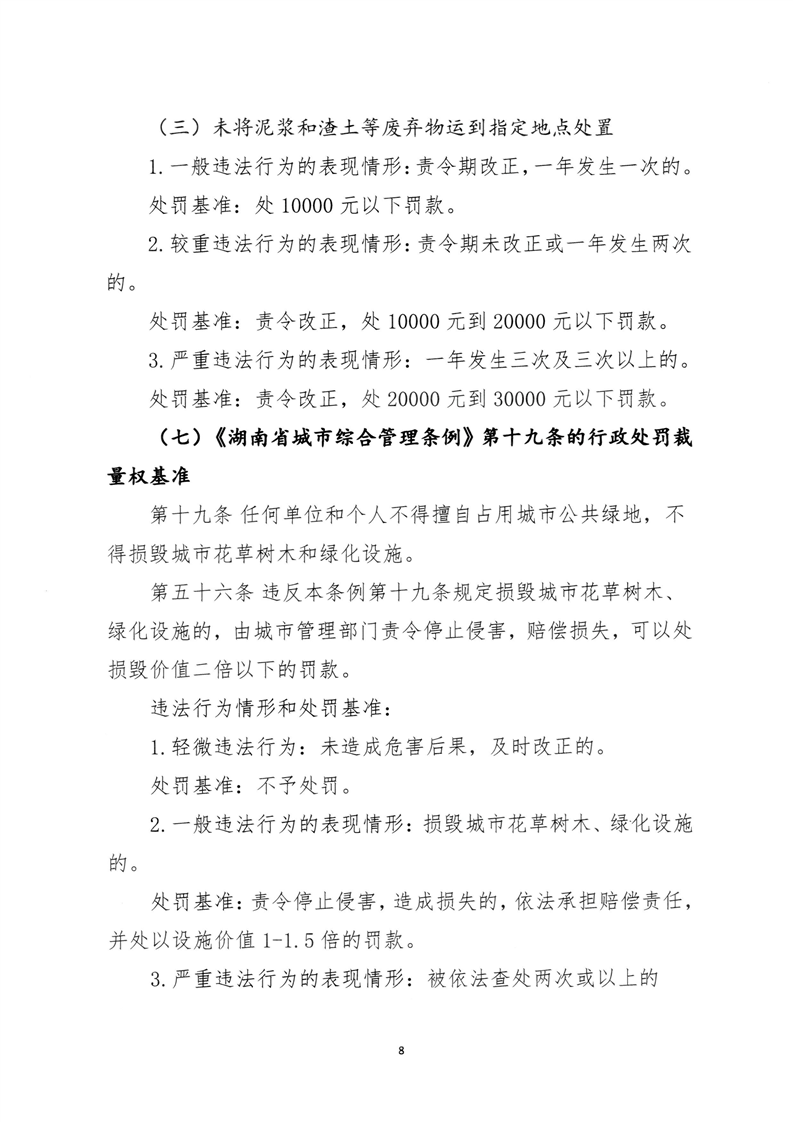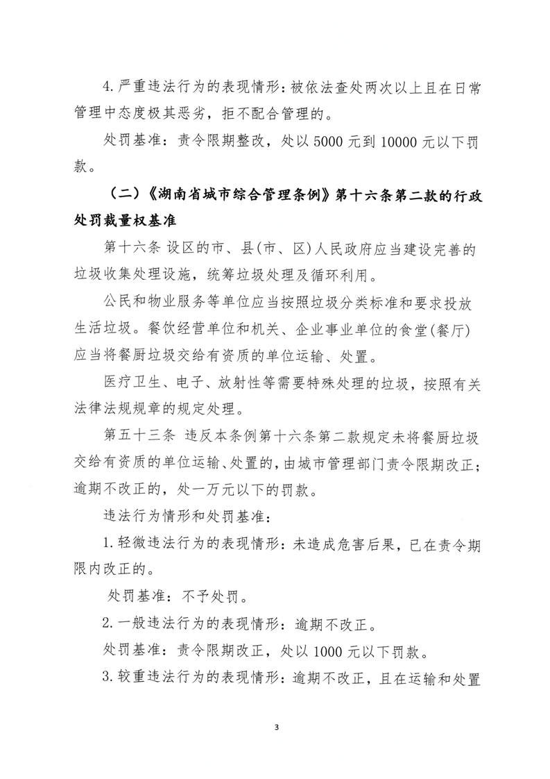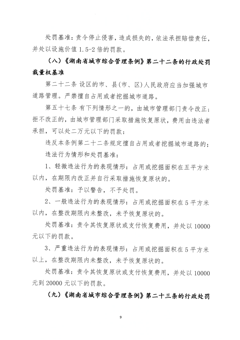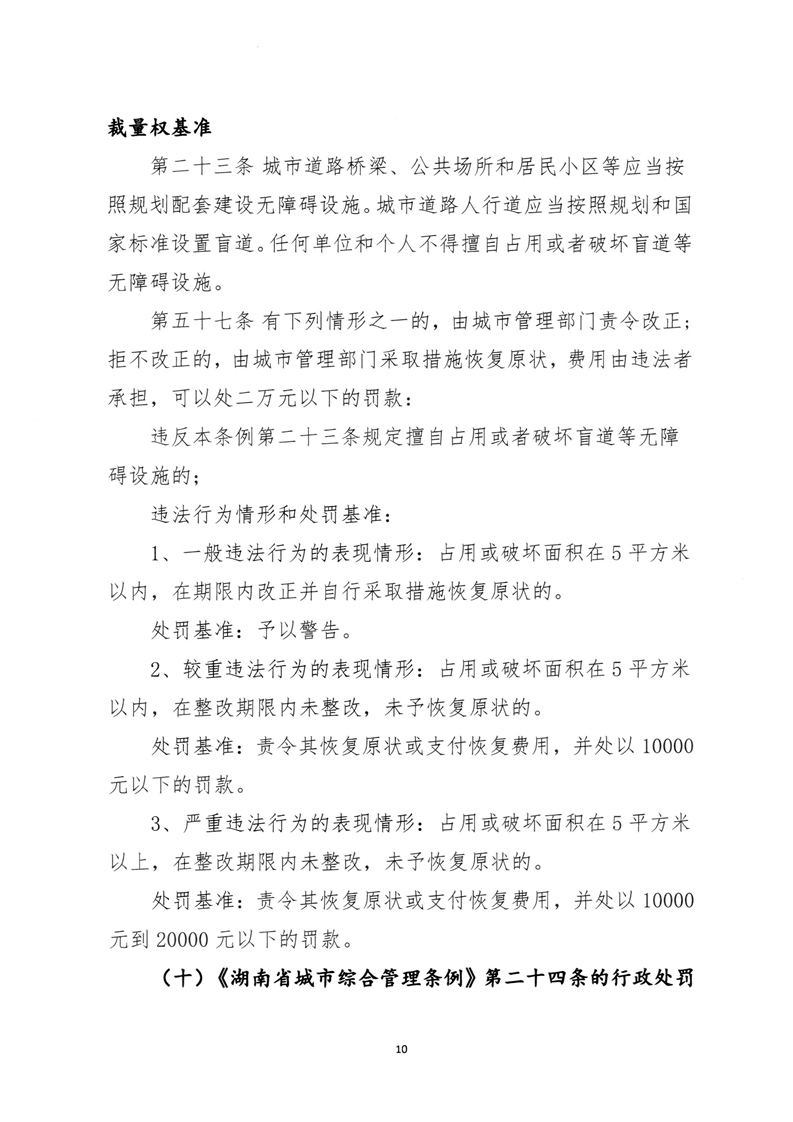 关于印发《永州市城市管理行政处罚裁量权基准》的通知