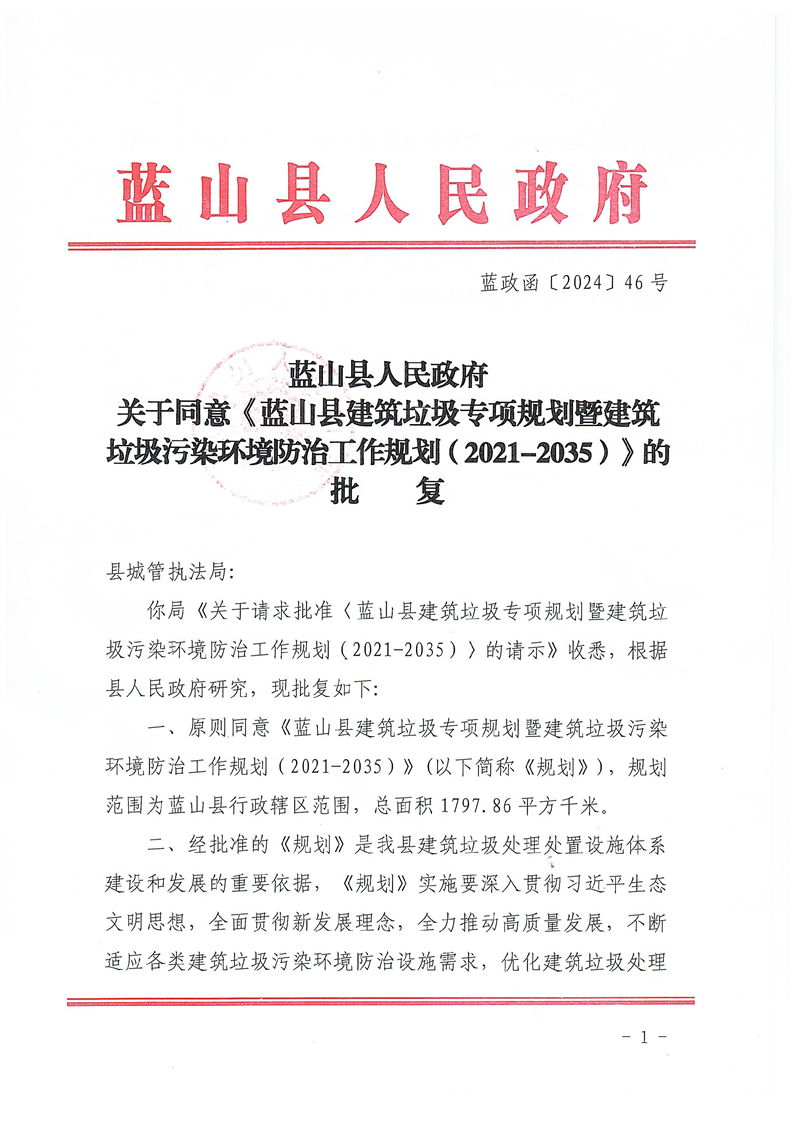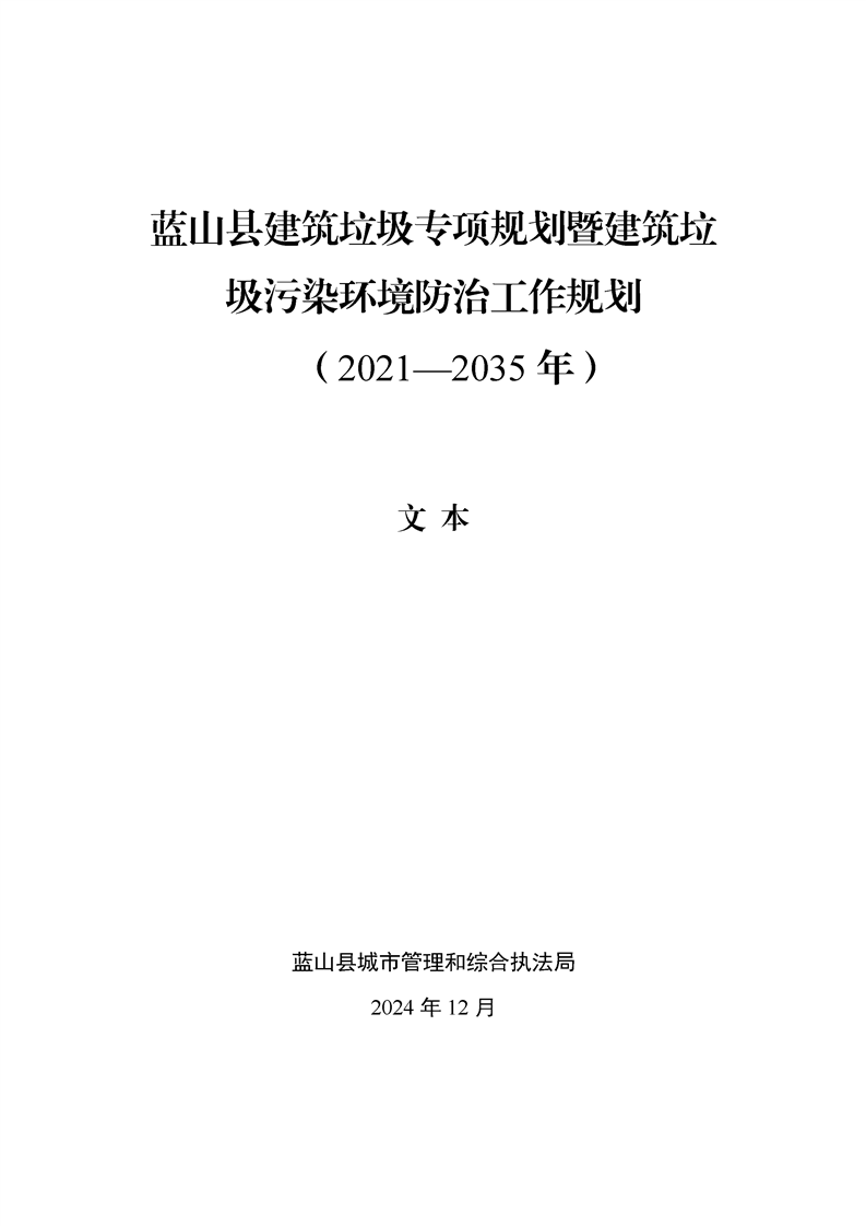 名称: 蓝山县建筑垃圾专项规划暨建筑垃圾污染环境防治工作规划(2021-2035)