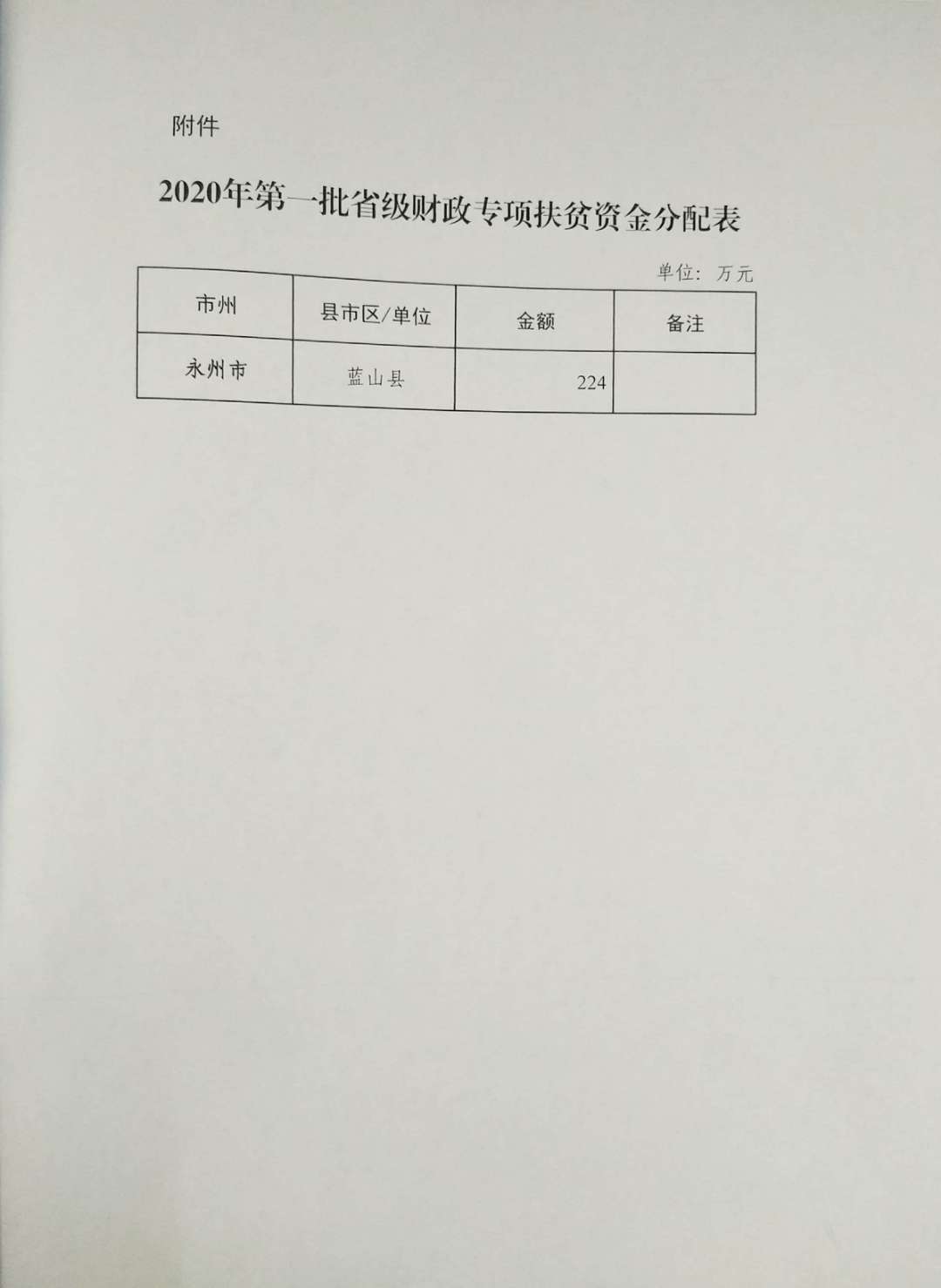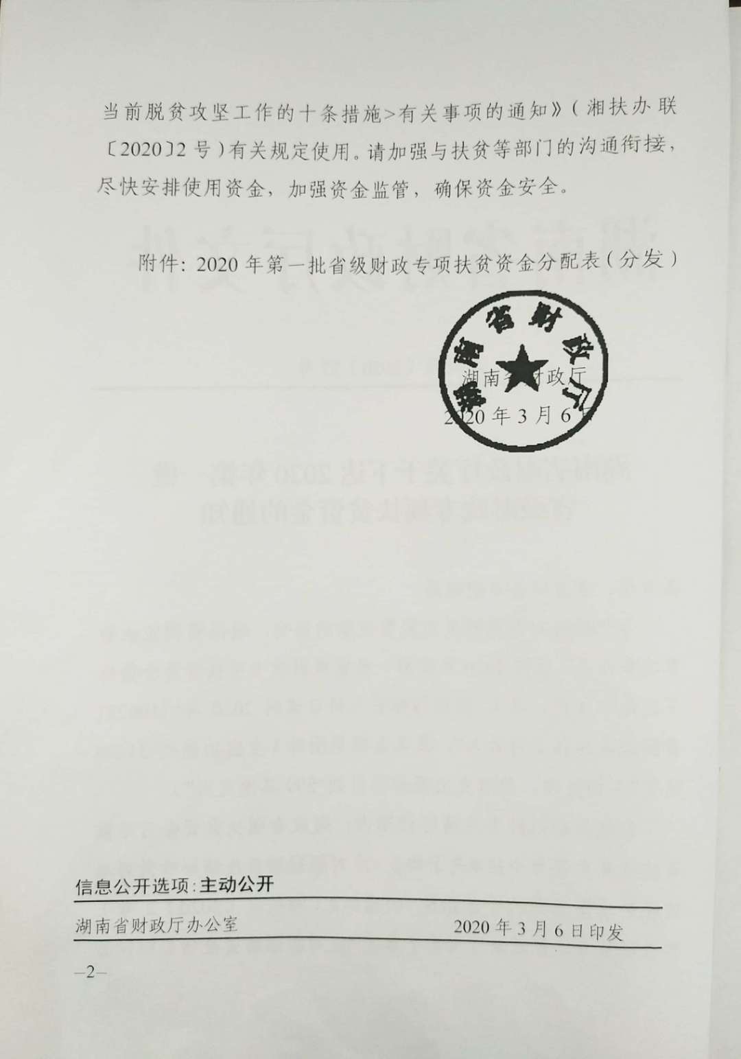湖南省财政厅关于下达2020年第一批省级财政专项扶贫资金的通知