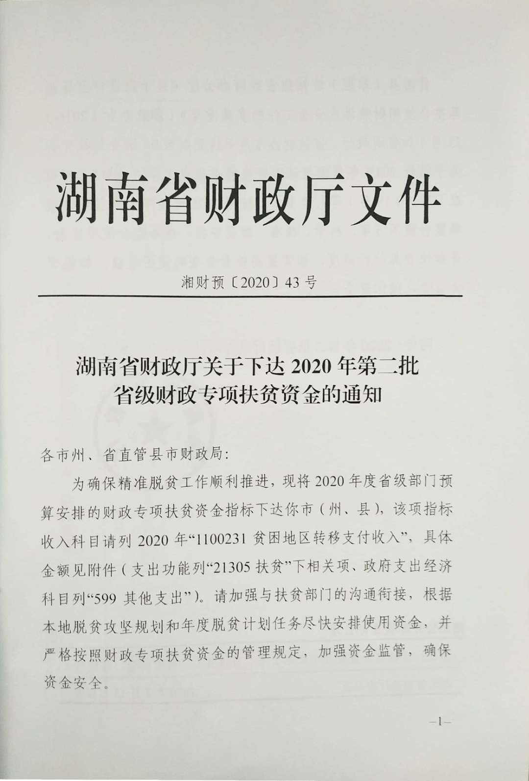 名称: 湖南省财政厅关于下达2020年第二批省级财政专项扶贫资金的通知