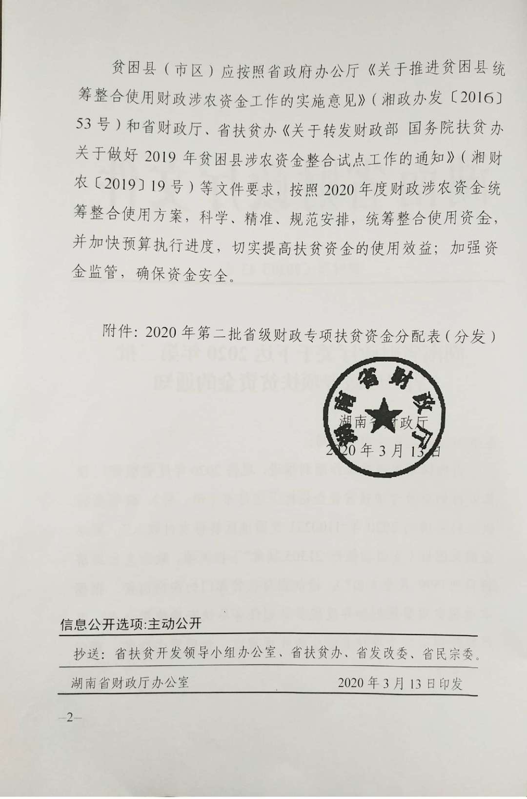 湖南省财政厅关于下达2020年第二批省级财政专项扶贫资金的通知