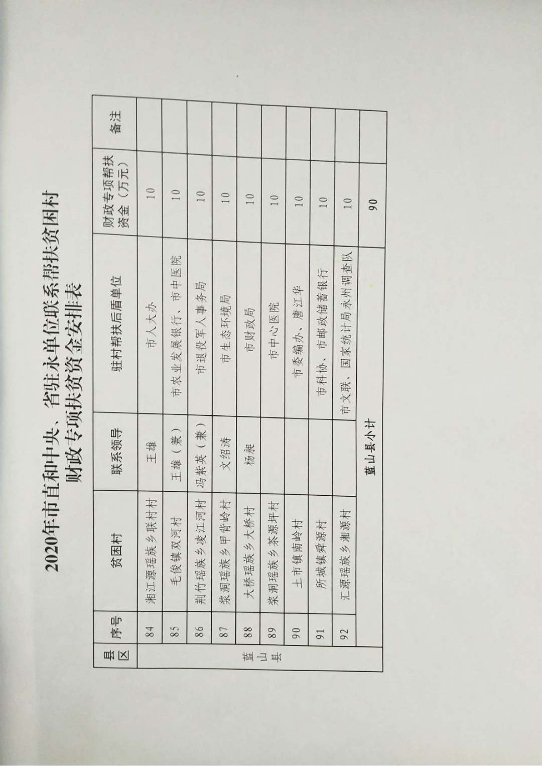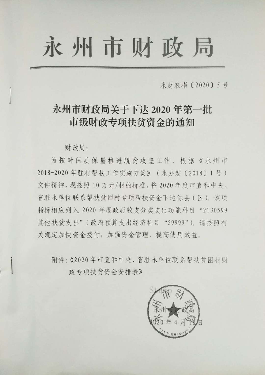 名称: 永州市财政局关于下达2020年第一批市级财政专项扶贫资金的通知