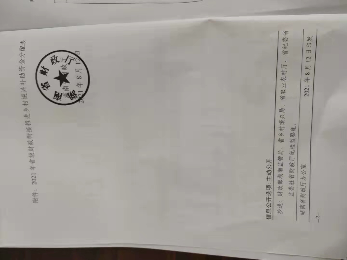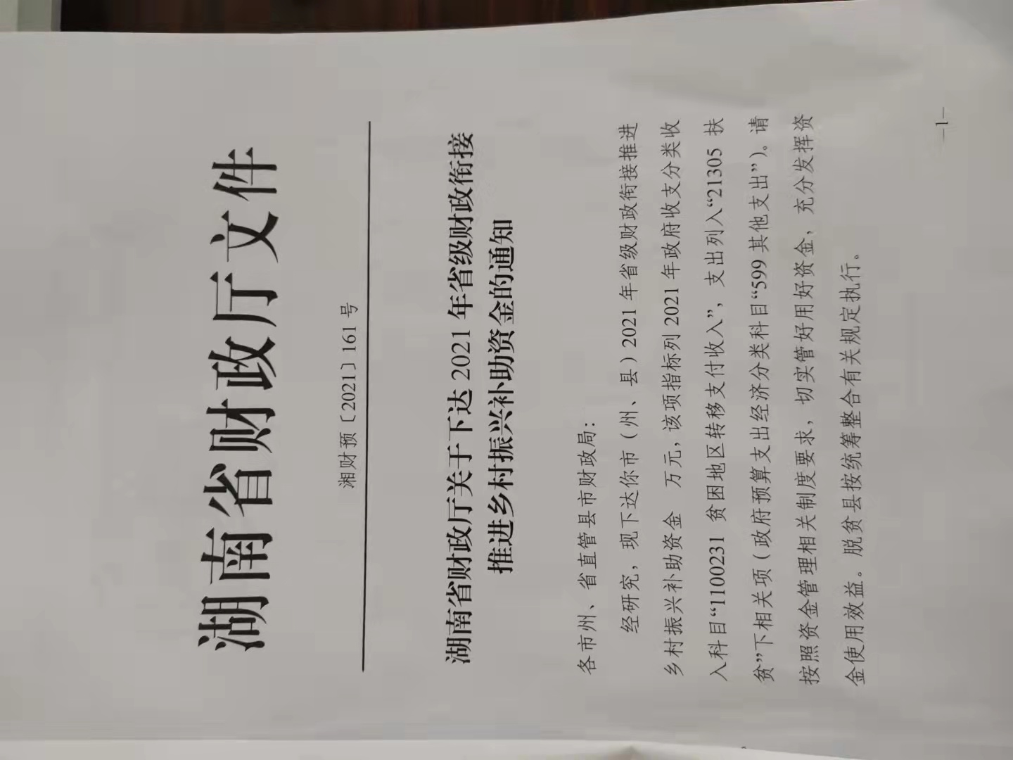 名称: 湖南省财政厅关于下达2021年省级财政衔接推进乡村振兴补助资金的通知
