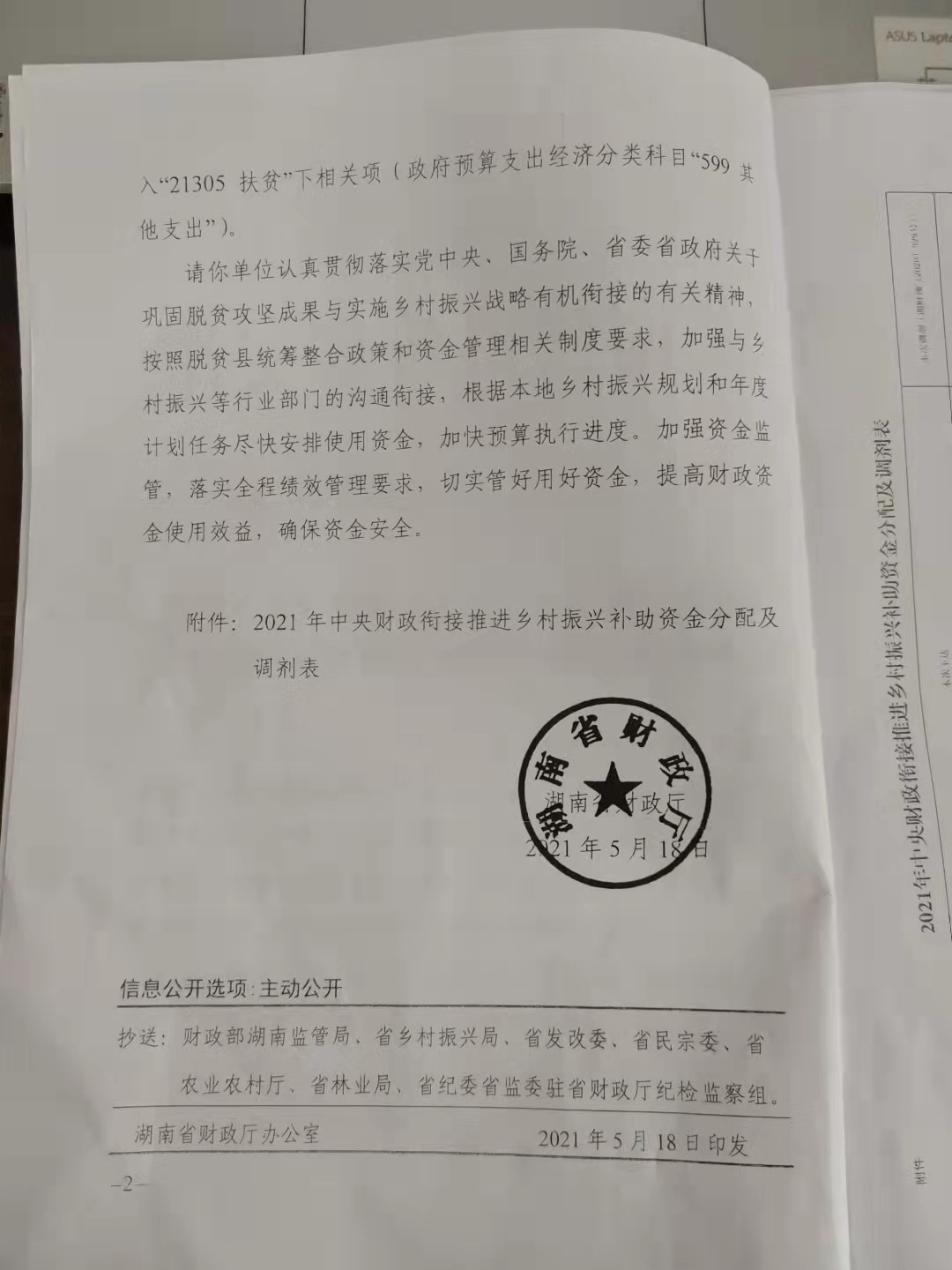 湖南省财政厅关于下达及调剂2021年中央财政衔接推进乡村振兴补助资金的通知