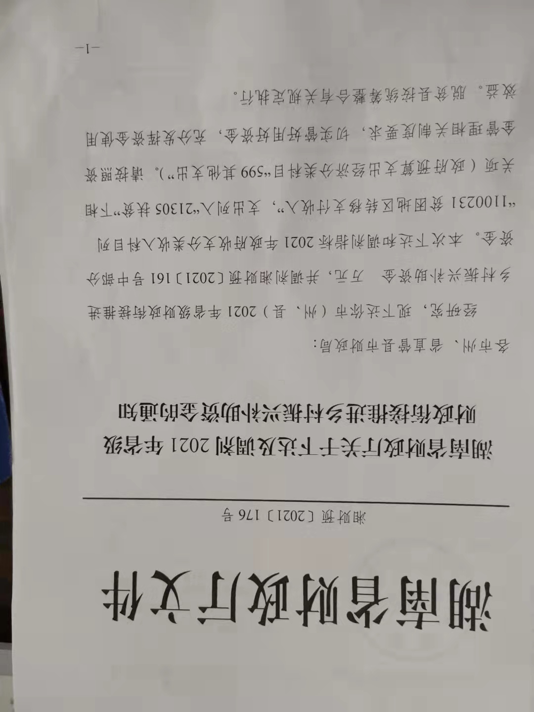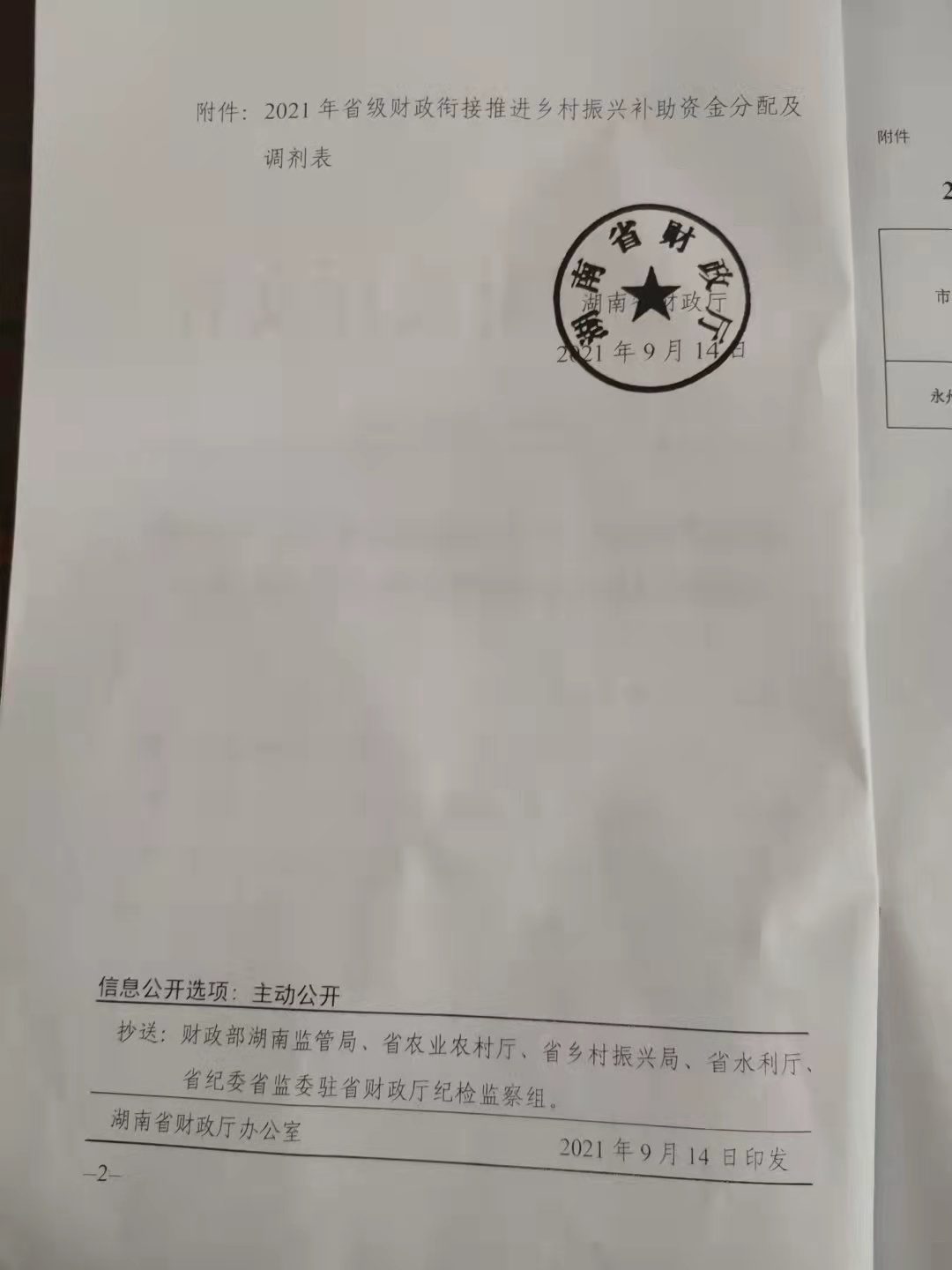 名称: 湖南省财政厅关于下达及调剂2021年省级财政衔接推进乡村振兴补助资金的通知