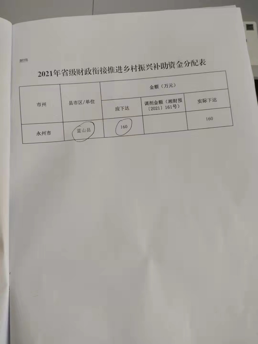 湖南省财政厅关于下达及调剂2021年省级财政衔接推进乡村振兴补助资金的通知