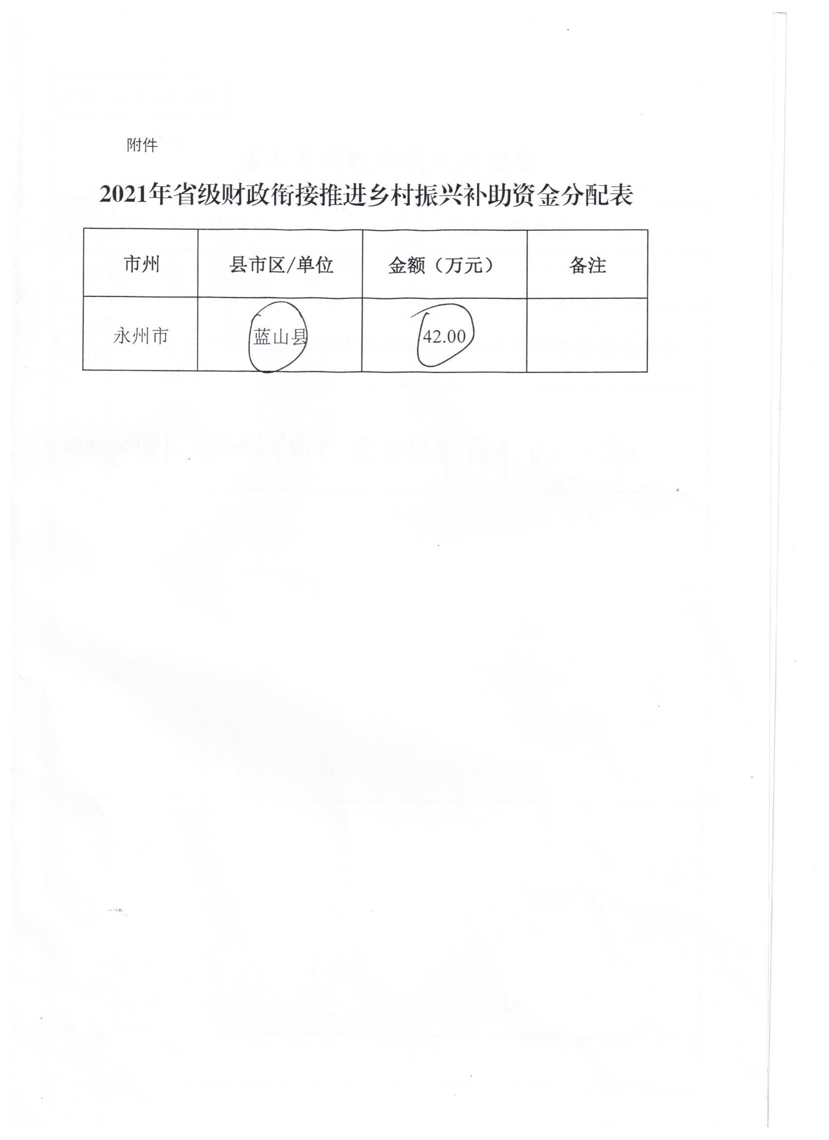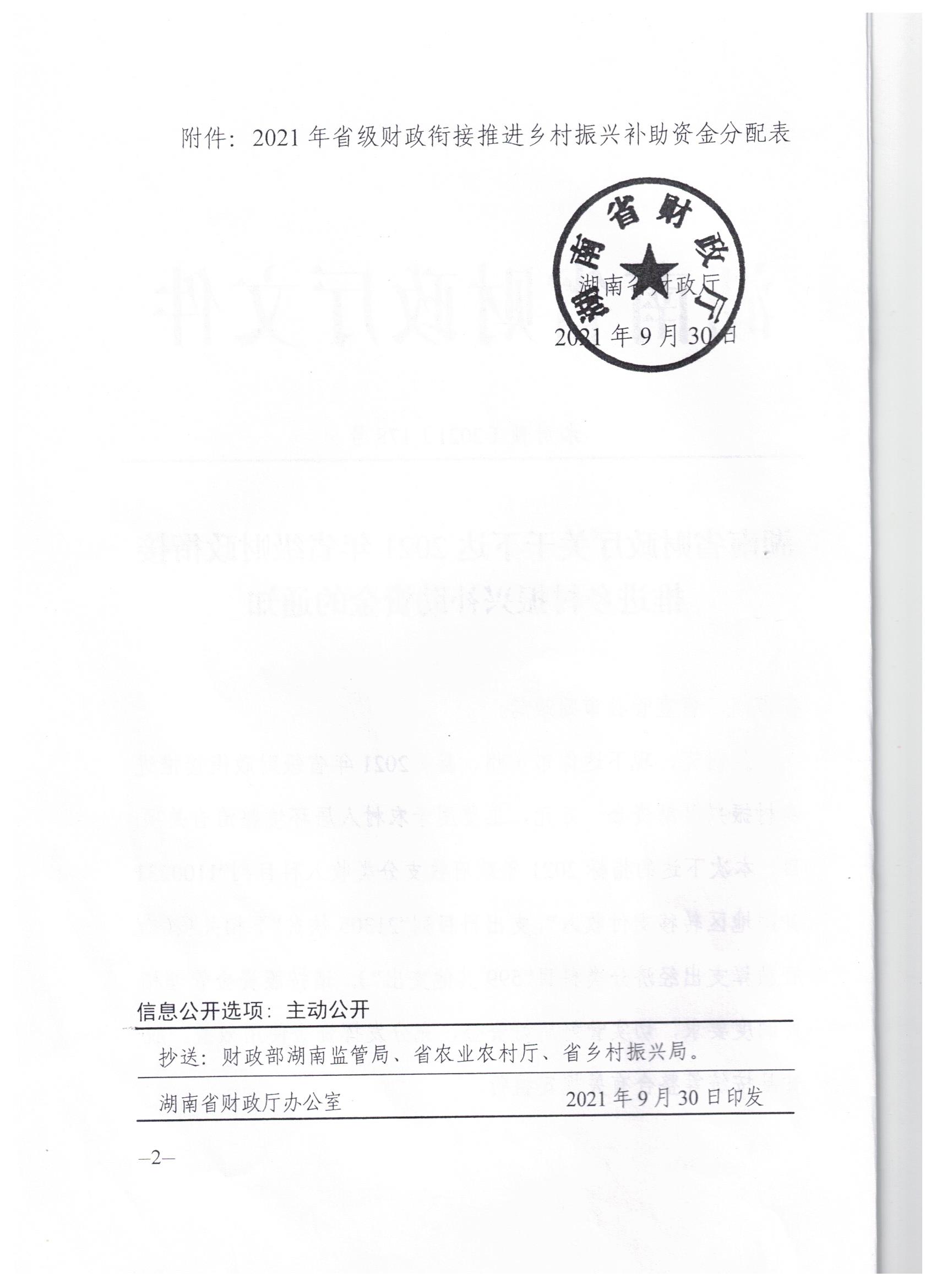 湖南省财政厅关于下达2021年省级财政衔接推进乡村振兴补助资金的通知
