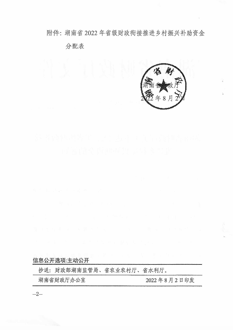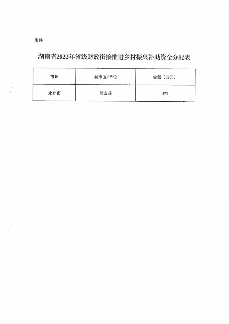 湖南省财政厅关于下达2022年省级财政衔接推进乡村振兴补助资金的通知