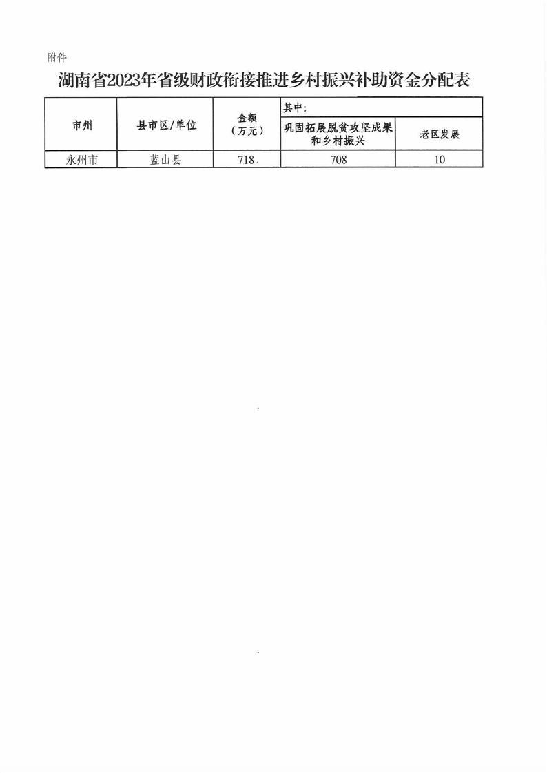 湖南省财政厅关于下达2023年省级财政衔接推进乡村振兴补助资金的通知