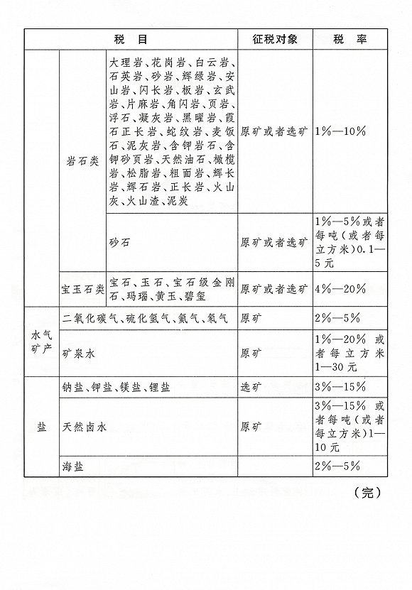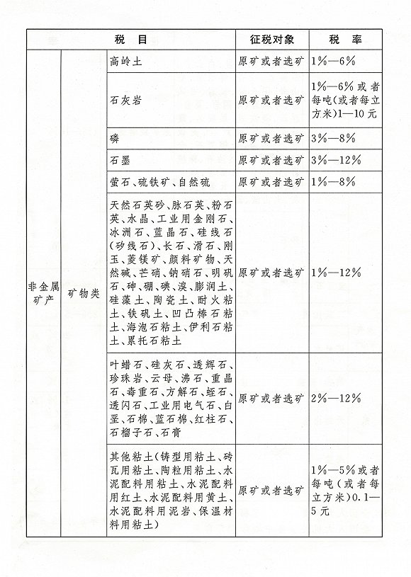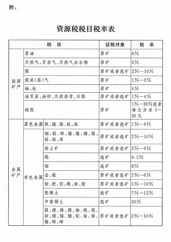第二条 资源税的税目、税率,依照《税目税率表》执行。