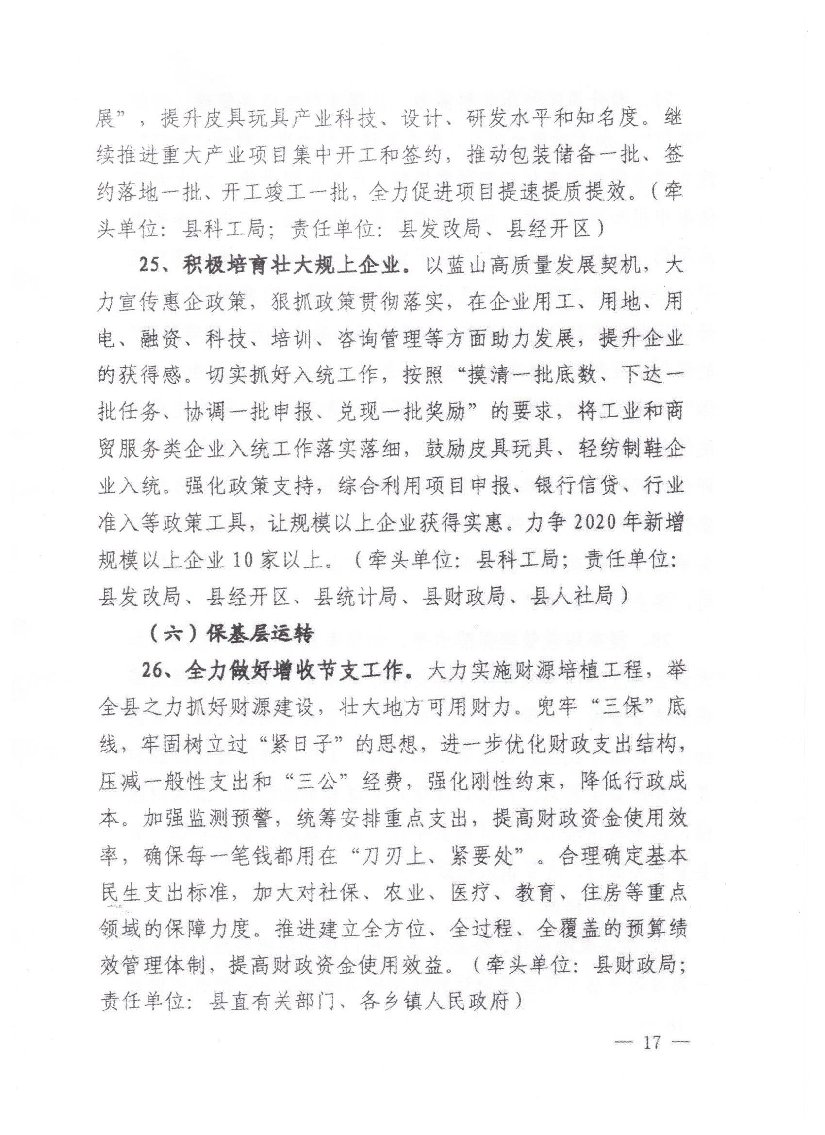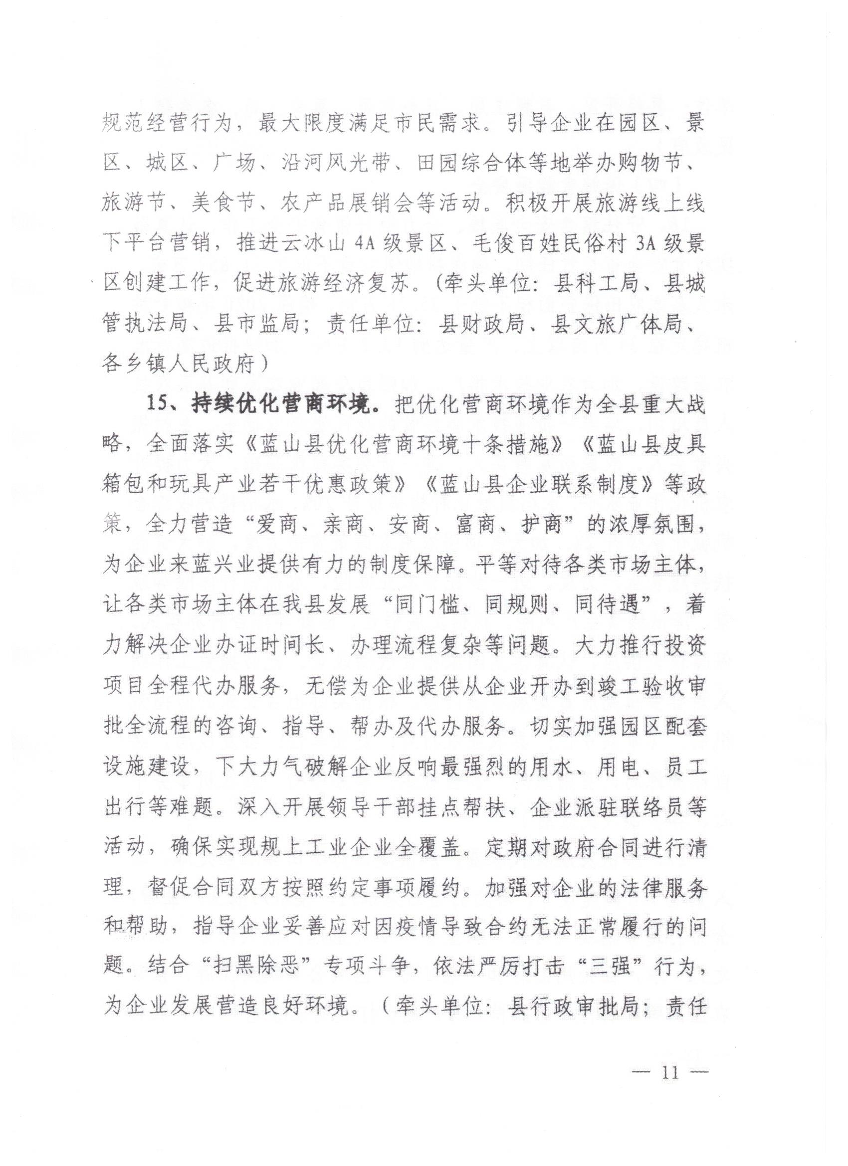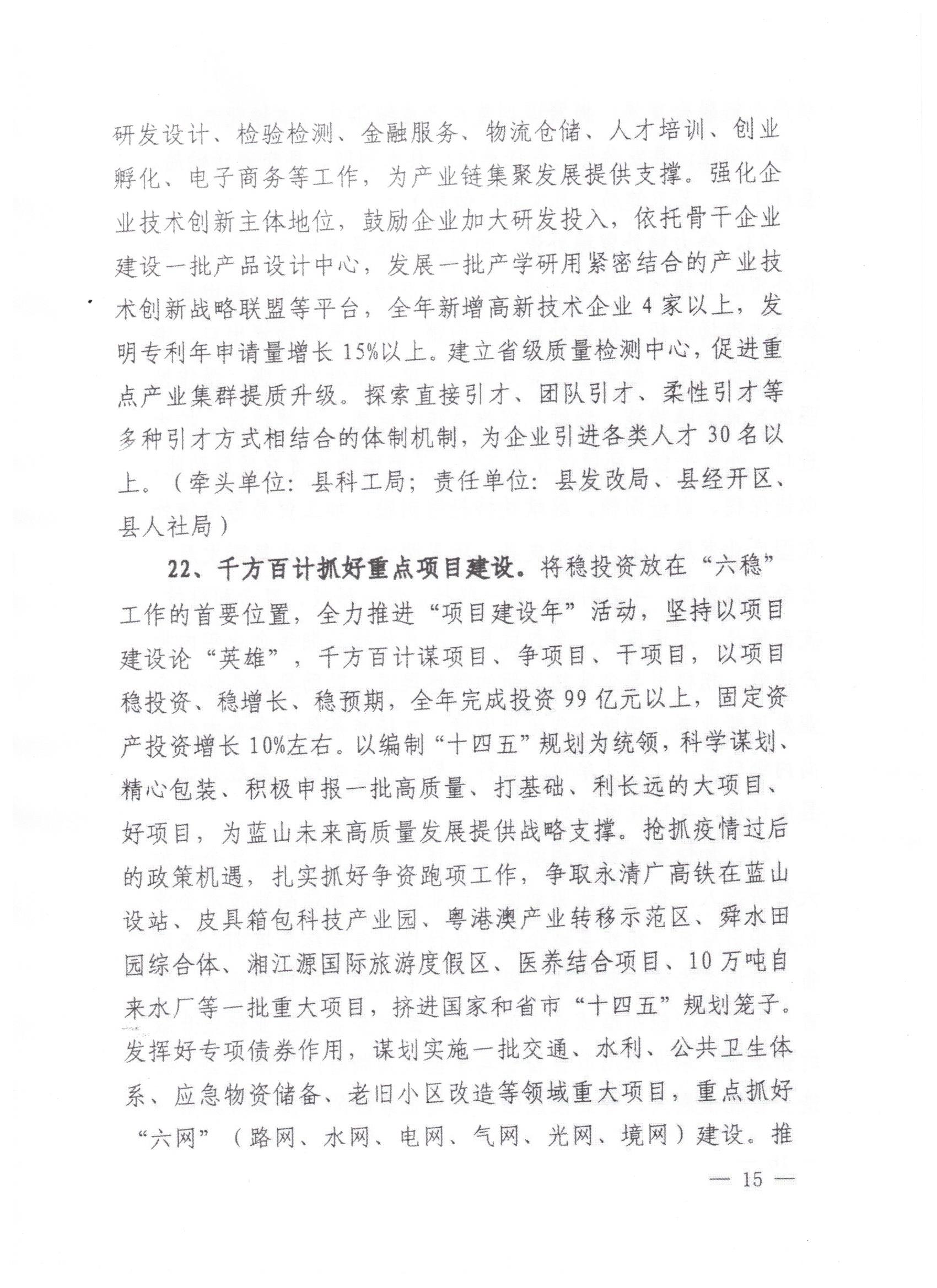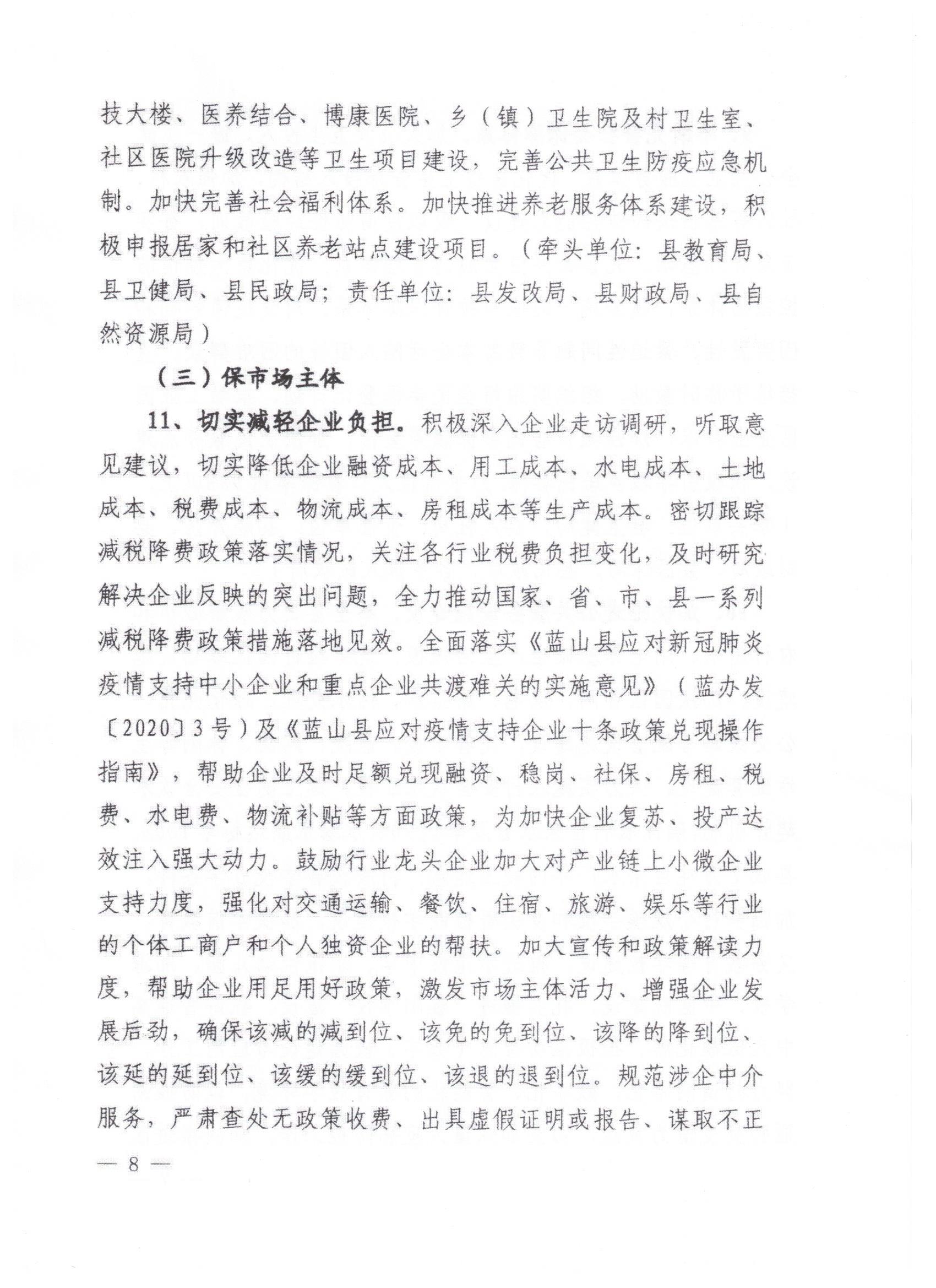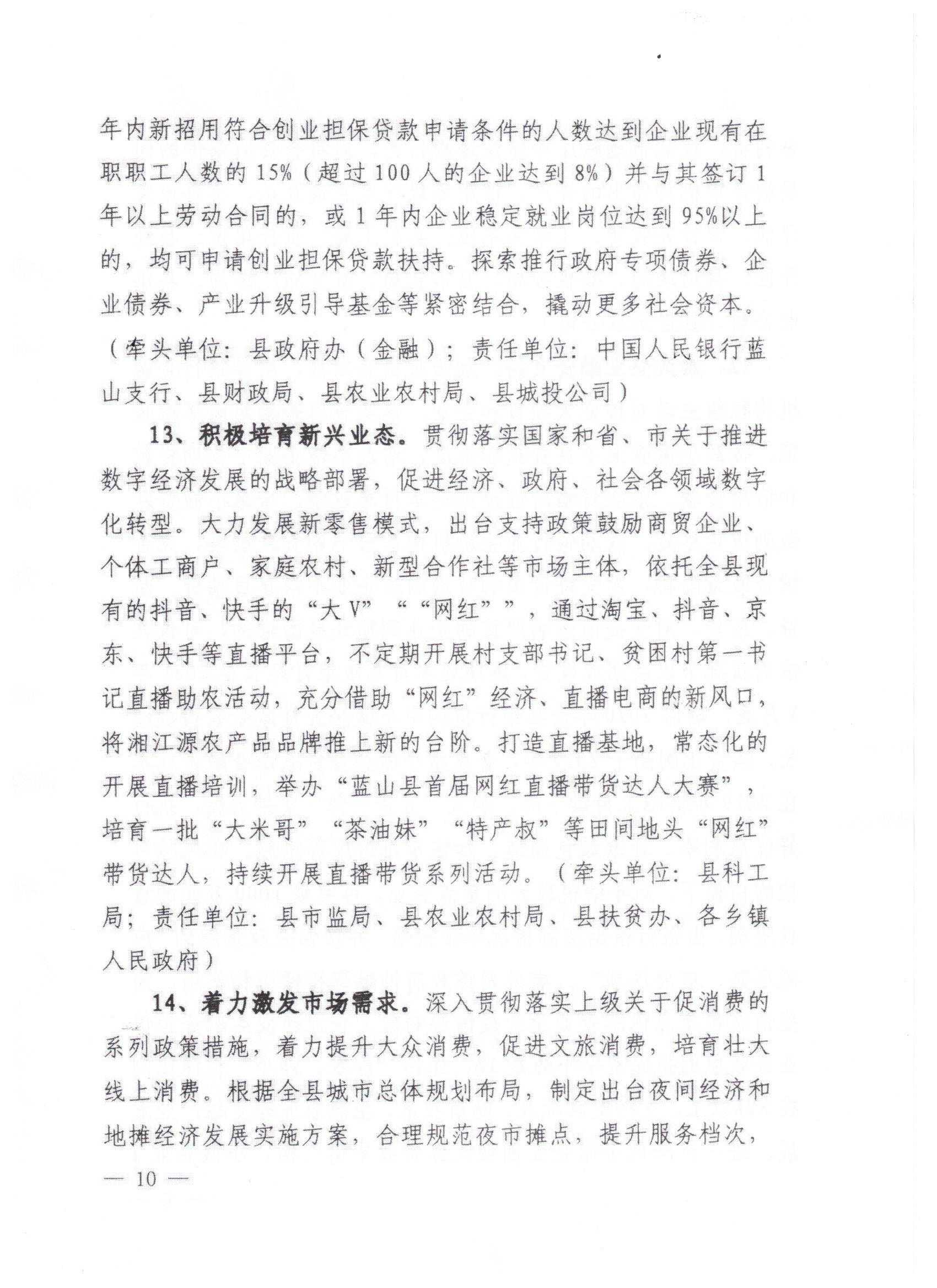 名称: 蓝山县人民政府办公室印发《蓝山县关于做好“六稳”工作落实“六保”任务的实施意见》的通知