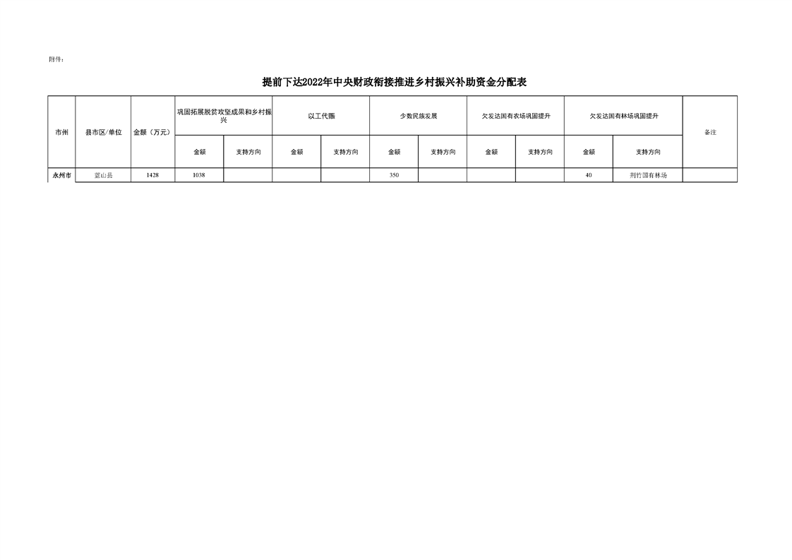 名称: 湖南省财政厅关于提前下达2022年中央财政衔接推进乡村振兴补助资金的通知