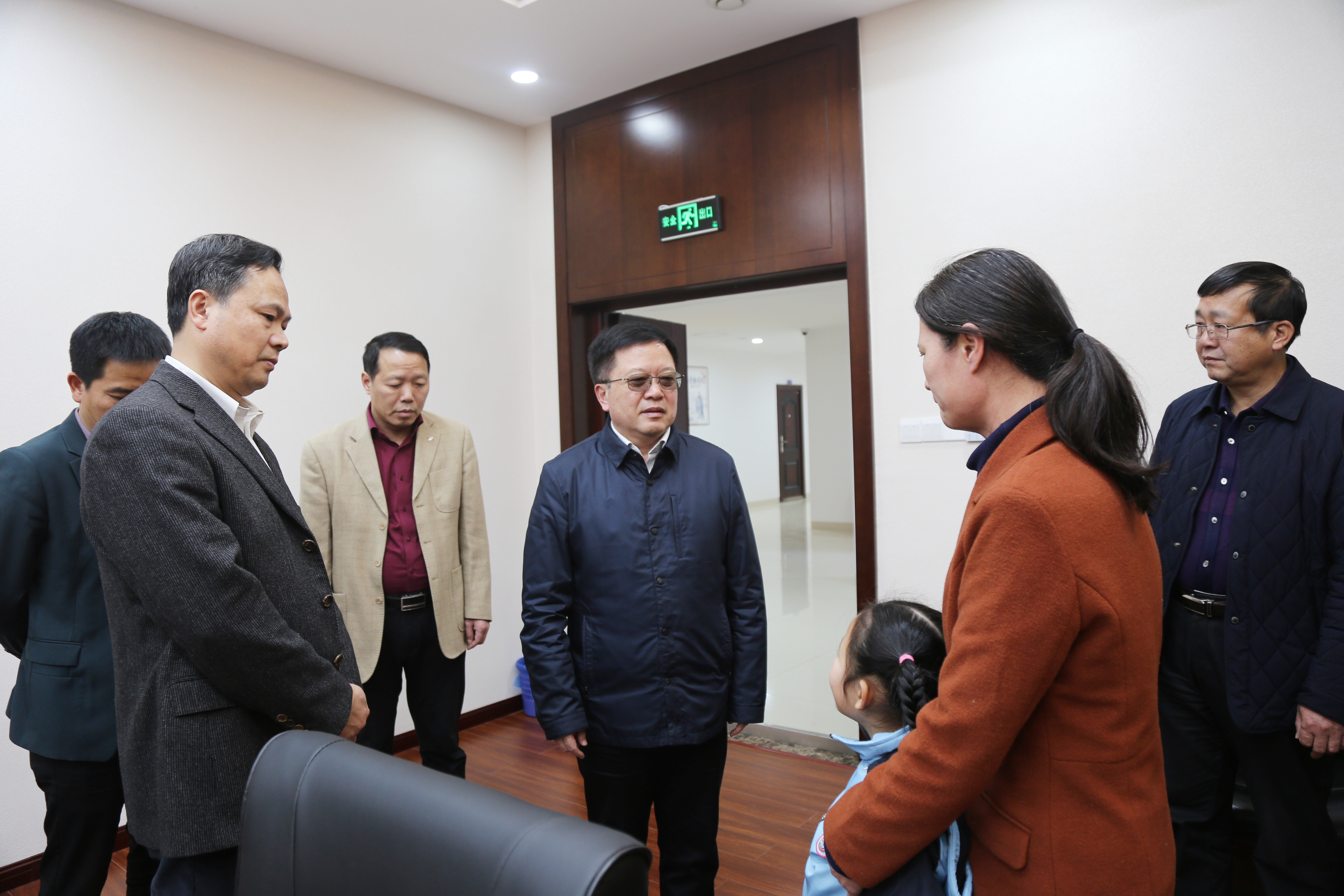 1月8日下午,省扶贫办党组副书记、副主任贺丽君来到永州市财政局,看望慰问因公牺牲的市财政局派驻蓝山县大桥瑶族乡大桥村驻村帮扶工作队原队长张拥军同志的妻子和女儿,市人民政府副市长谢景林陪同慰问。