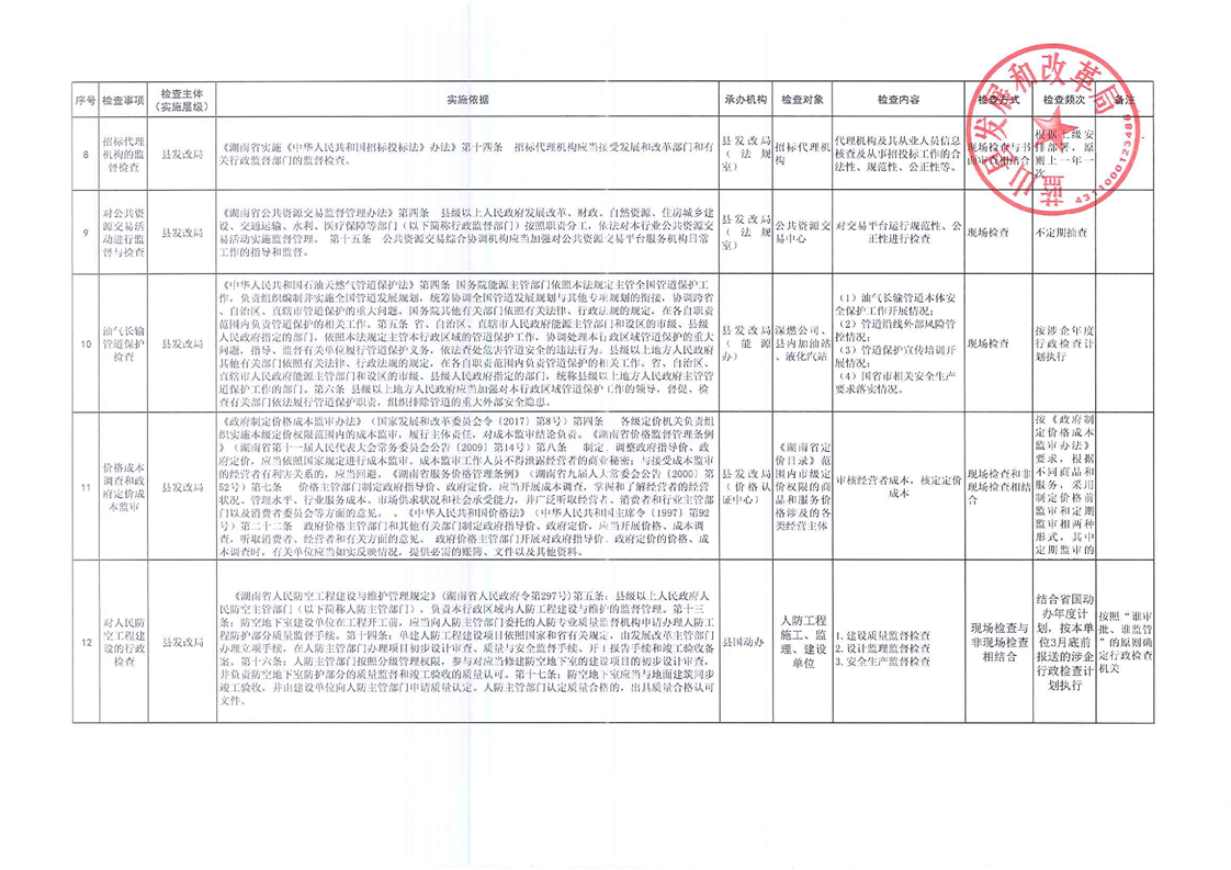 蓝山县发展改革局涉企行政检查事项清单
