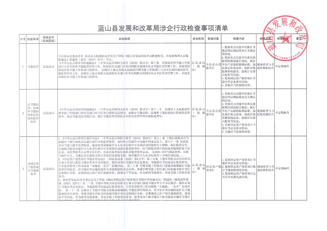 名称: 蓝山县发展改革局涉企行政检查事项清单