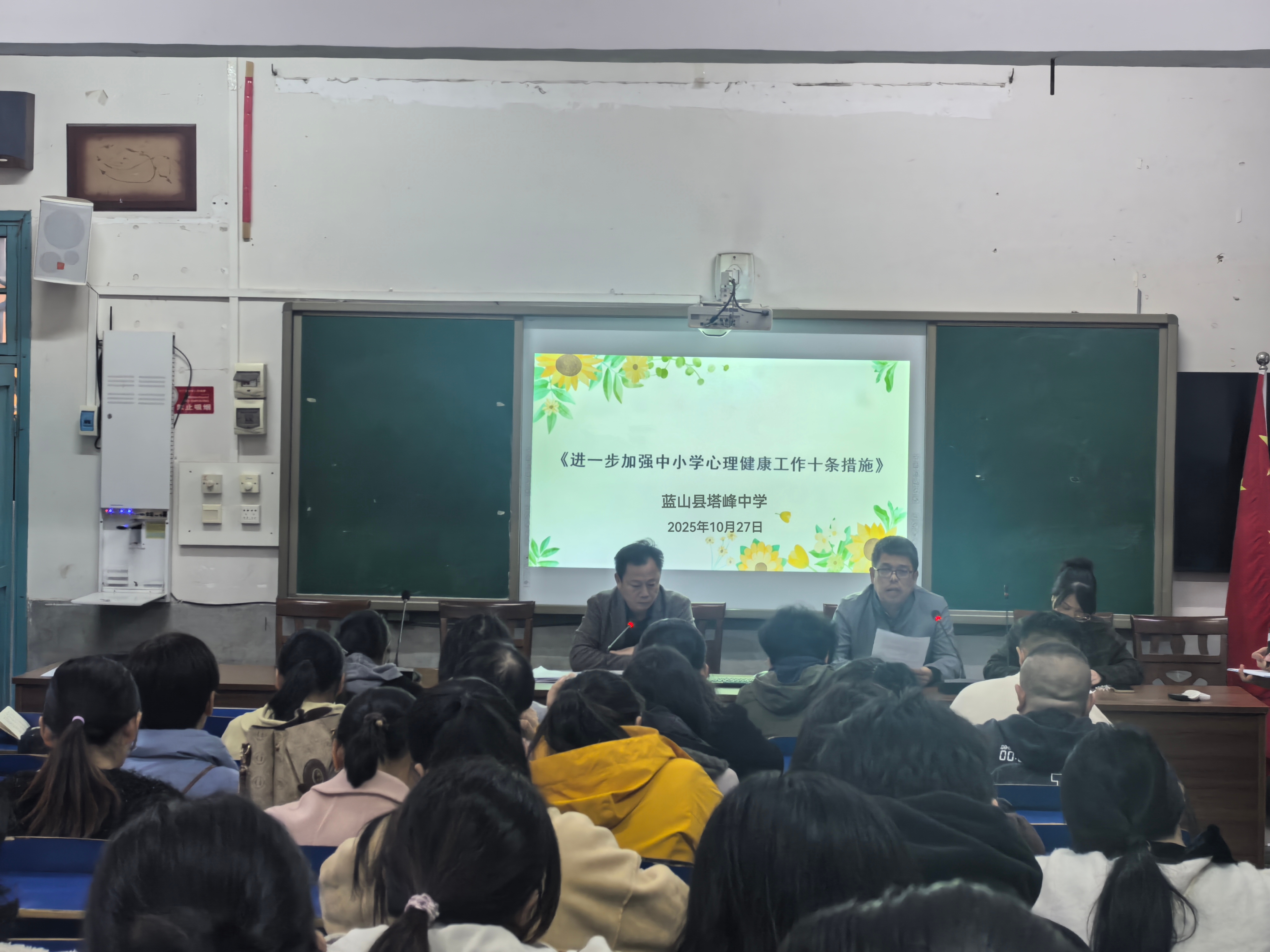 (通讯员:周云 郑雪梅)10月27日,蓝山县塔峰中学组织全体教师开展《进一步加强中小学心理健康工作十条措施》专题学习活动。